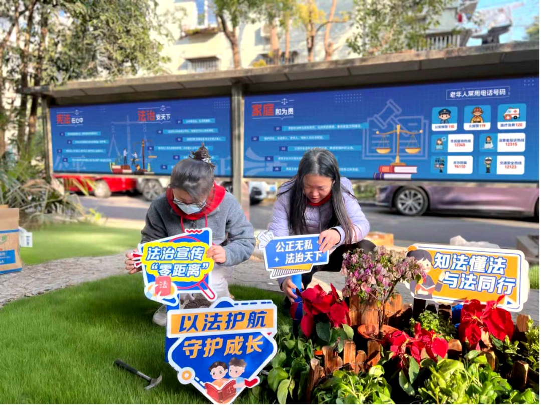 空间“焕新”易,秩序“常新”难。为巩固微更新成果,通过践行“走访收集+志愿联动+座谈共议”工作法,民主协商制定《“法治园地”公共空间公约》,推动社区管理从“单一管”转向“共同护”。同时,完善“预防+咨询+调解+诉讼”一站式服务体系,壮大调解志愿者、党员学法志愿者、“法眼看社区”监督志愿者等多支队伍,为空间与品牌的长期运行提供坚实保障。