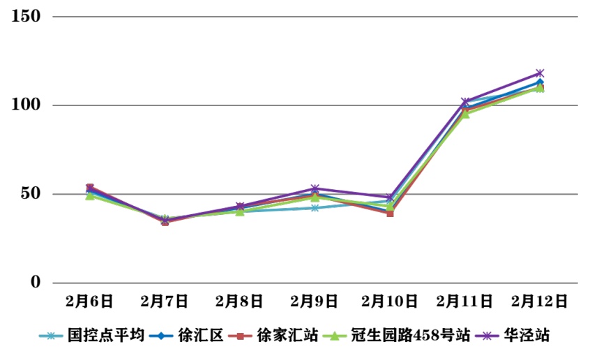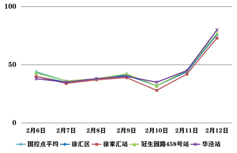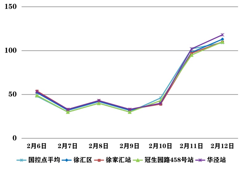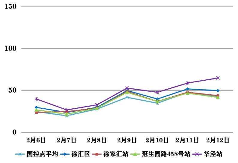 受局地静稳累积和近周边污染输送影响,徐汇区上周(2月6日—2月12日)出现一天以细颗粒物(PM2.5)为主要污染物的轻度污染天气。徐汇区各部门坚持做好污染源管控和道路排堵保畅,落实预警天气各类污染源管控要求,加强重点区域巡查和道路洒扫。自2月14日,污染气团逐步过境,PM2.5浓度逐渐下降至良级水平。 春节假期期间,徐汇区扩散条件较好,空气质量总体以良为主。受外来污染输送影响,2月17日凌晨至上午可能出现短时PM2.5轻度及以上污染过程;至2月19日,空气质量转为优良。轻度污染期间,易感人群症状有轻度加剧,健康人群出现刺激症状。建议儿童、老年人及心脏病、呼吸系统疾病患者应减少长时间、高强度的户外锻炼。 2026年2月6日—2月12日,徐汇区大气环境质量报告如下所示: 注:徐汇区空气质量数据取国控点和市控点平均值计算得出 2月6日至2月12日徐汇区空气质量等级及主要污染物: 一周平均环境指标 一周AQI指数 一周PM10分指数 一周PM2.5分指数 一周NO2分指数 一周O3分指数 编辑:罗时珎 转载请注明来自上海徐汇官方账号