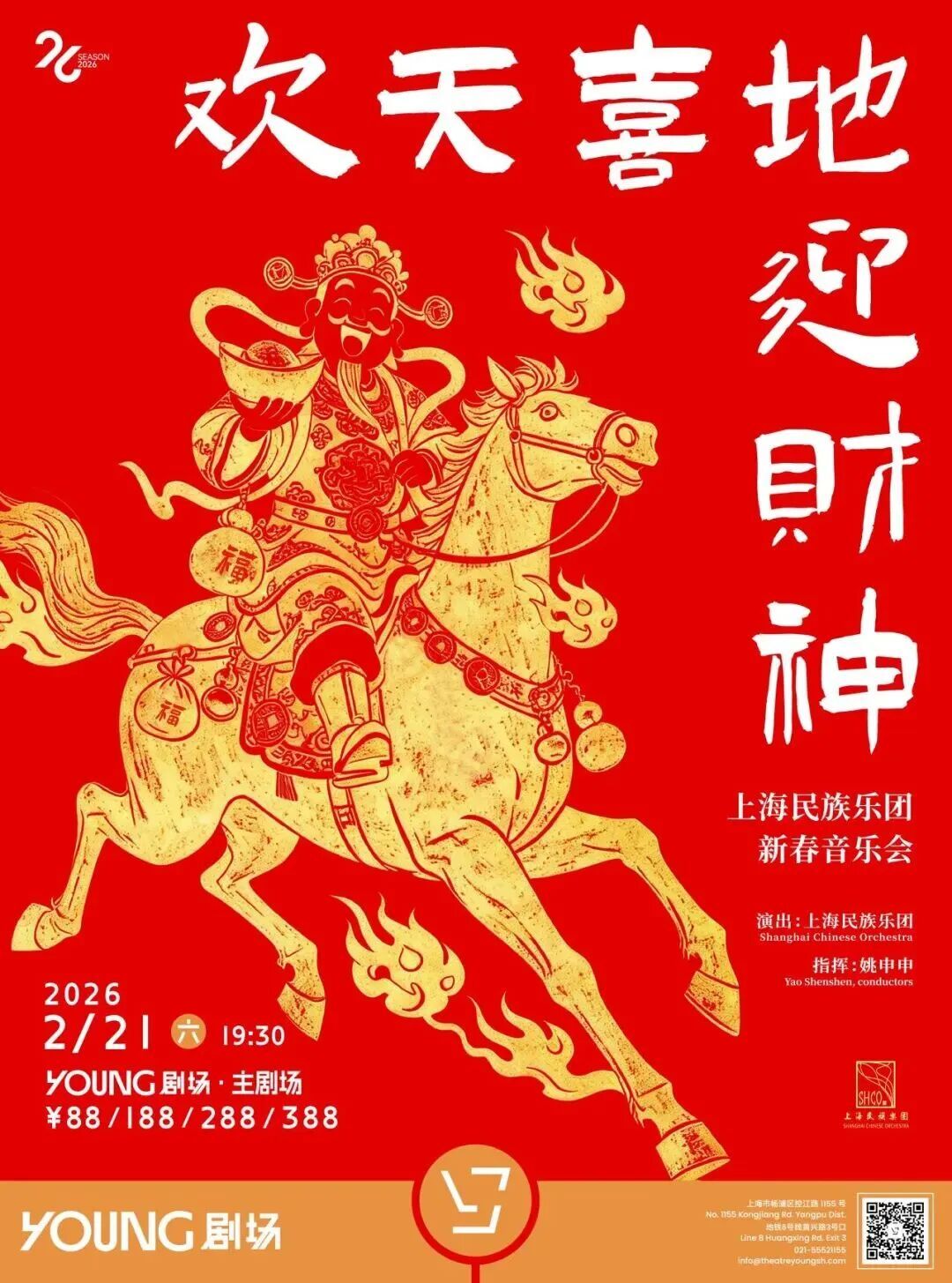 恰逢正月,上海民乐团的《欢天喜地迎财神》《国乐中的十二生肖》也将在YOUNG剧场上演,快闪演出将不定时掉落,敬请期待!