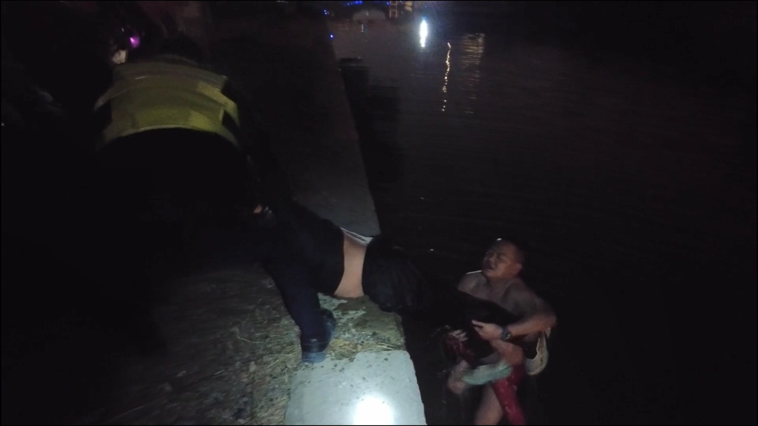 据了解,当晚抵达现场后,民警发现落水男子正漂浮在河道中央。“当时水流较急,该男子已被冲至远处。即便我们大声呼喊,他也没有自主求生反应,几乎没有挣扎迹象,情况十分危急。”朱亚明回忆道,见状,他快速脱去衣物、戴上救生圈,纵身跃入冰冷的未知水域实施救援。