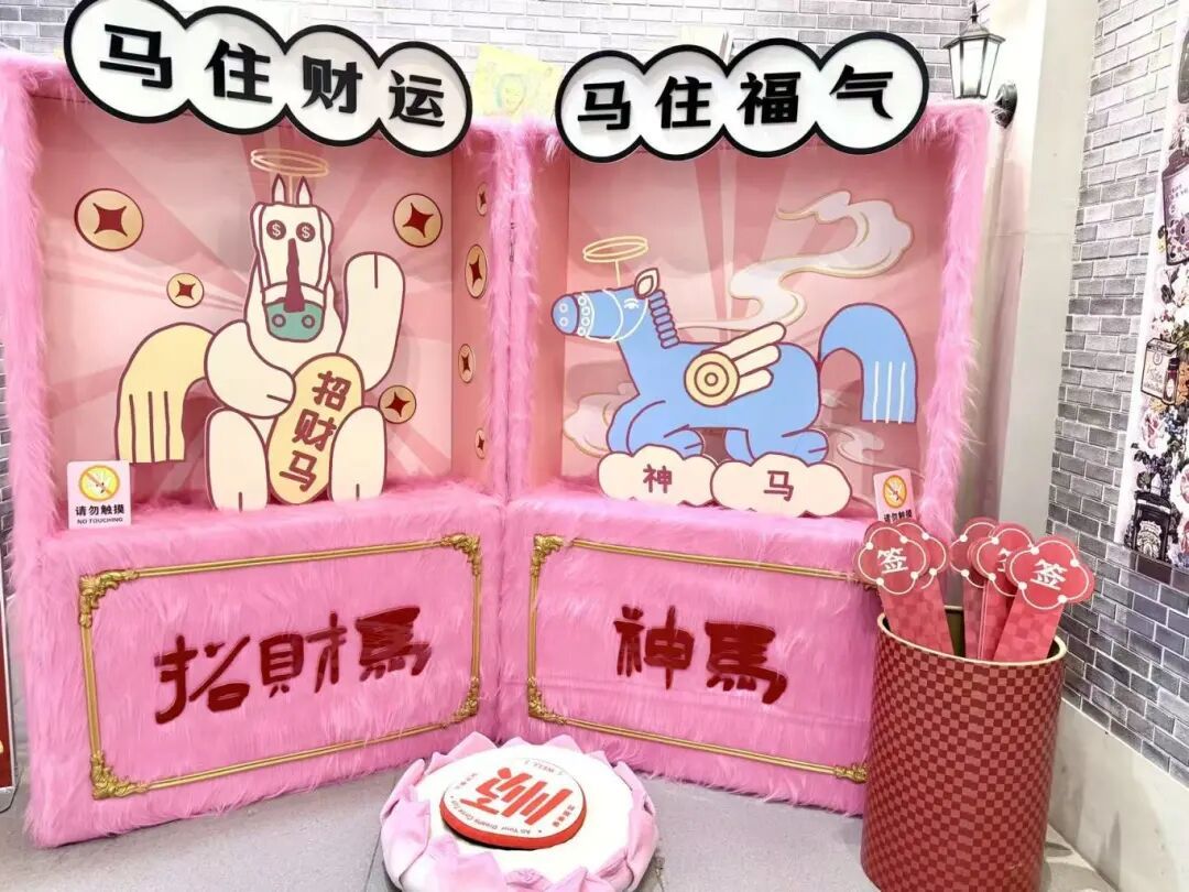 百联曲阳以马年新春为契机,推出“新年嗨玩局·FUN马过来”主题系列活动,将商场变身为年味与趣味交织的互动乐园。现场设置“拍拍马”装置、“马上有钱许愿池”“马年第一签”等新春打卡点,以“拍马屁、没烦恼”“立马有钱”等谐趣梗拉满新年仪式感。