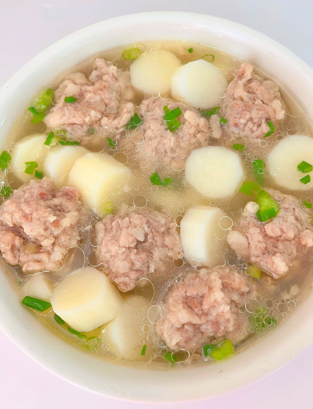 3.炒锅置武火上烧热,加入植物油,至六成热时,加入上汤,烧沸,下入肉丸,煮熟,加入鸡精即成。