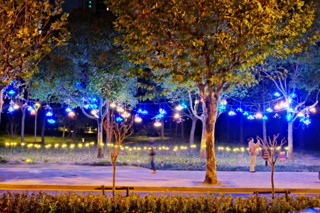 灯光景观设计静立于新村路万泉绿地入口,悄然装点着人来车往的万里夜色。跃动的光点宛若星辰,随微风轻盈起舞,将一片梦幻的天空引入城市。每一盏小灯在渐深的暮色中集体呼吸。这光影的奏鸣,不仅传递着蓬勃的希望,更在喧嚣的街边开辟了一处温暖而宁静的港湾,让居民得以安放身心。当夜幕垂下,它不仅是璀璨的景观,更成为了照进万里社区居民的一份美好慰藉。