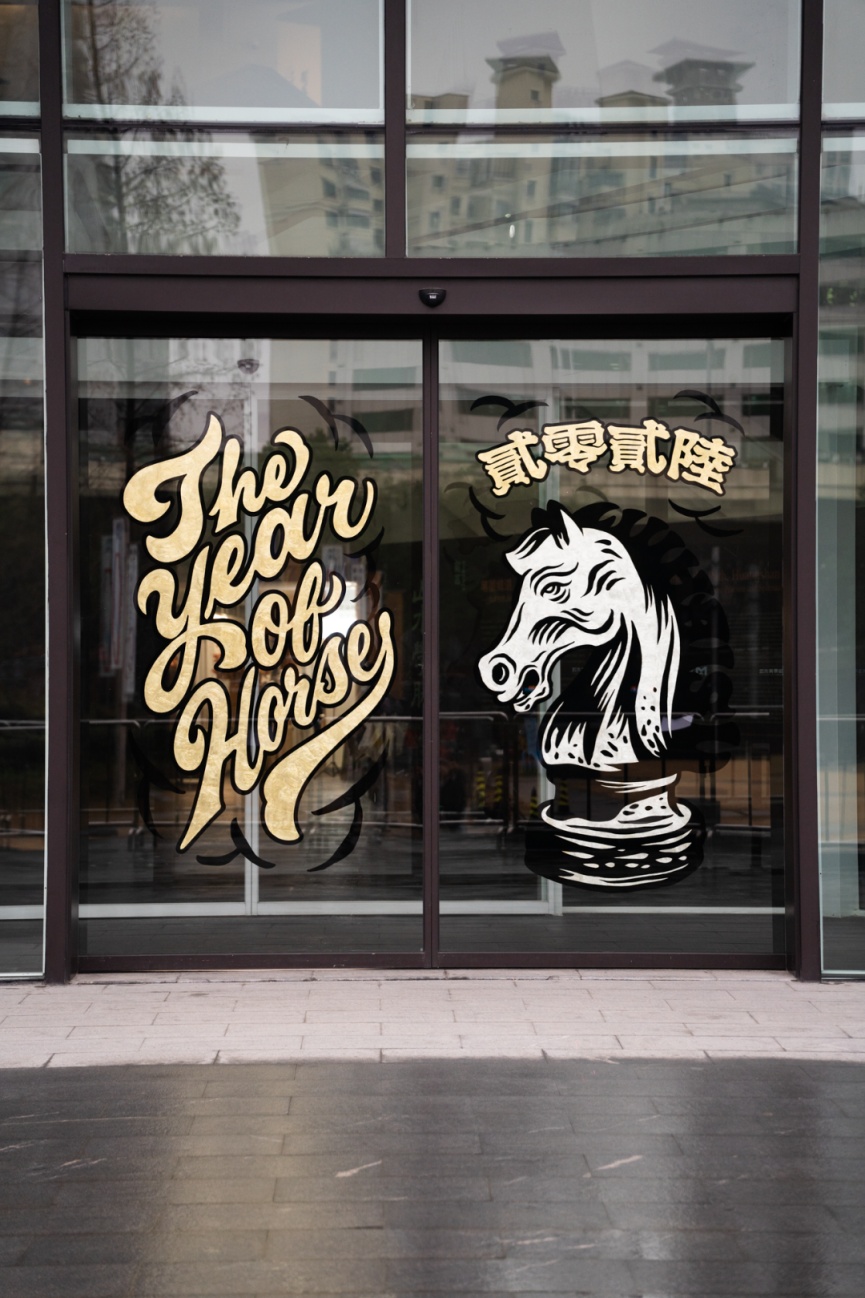 刘海粟美术馆的玻璃外立面上,也悄然跃起一匹“艺术马”。这组特别的马年窗花,以西洋棋中的骑士为原型,融合雕塑的立体感与半写实的灵动笔触,仿佛下一步就要从玻璃中跃入现实。