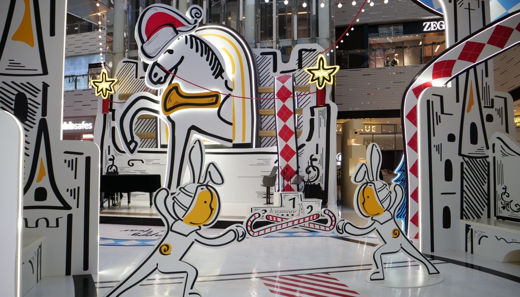 “冬日绮宴 Winter Gala”冬日季温暖开启!户外广场以马术腾跃之姿为灵感,借流动的线条勾勒出轻盈与力量交织的现代场景,既具仪式感,亦富灵动之美。顶部的节日星光与跃马线条遥相呼应,共同演绎一场冬夜的绮丽盛宴。