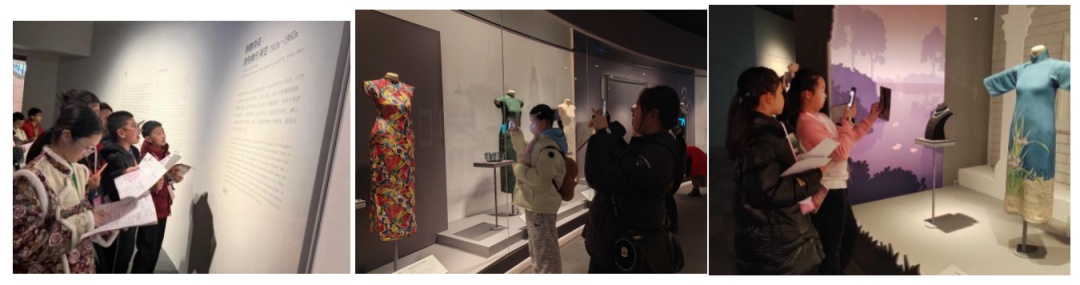 在上海博物馆“摩登华影”展厅,学员们沉浸式感受海派旗袍从20世纪20至60年代的演变历程。从廓形、剪裁到盘扣、面料,从倒大袖到修身曲线,了解每一处细节都是时代的注脚。