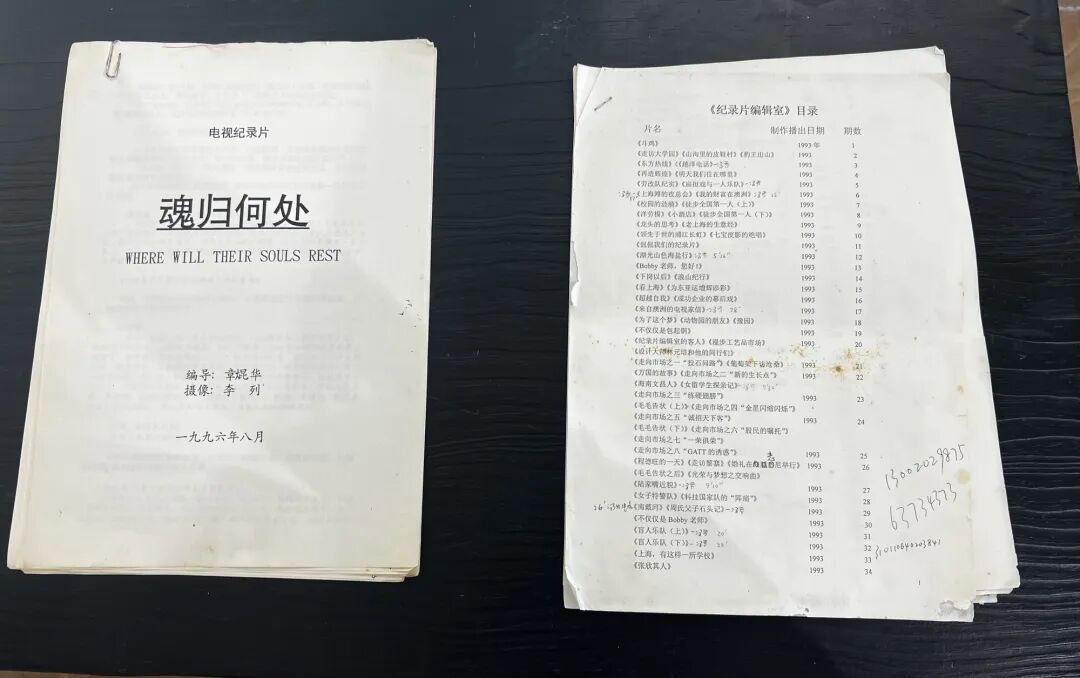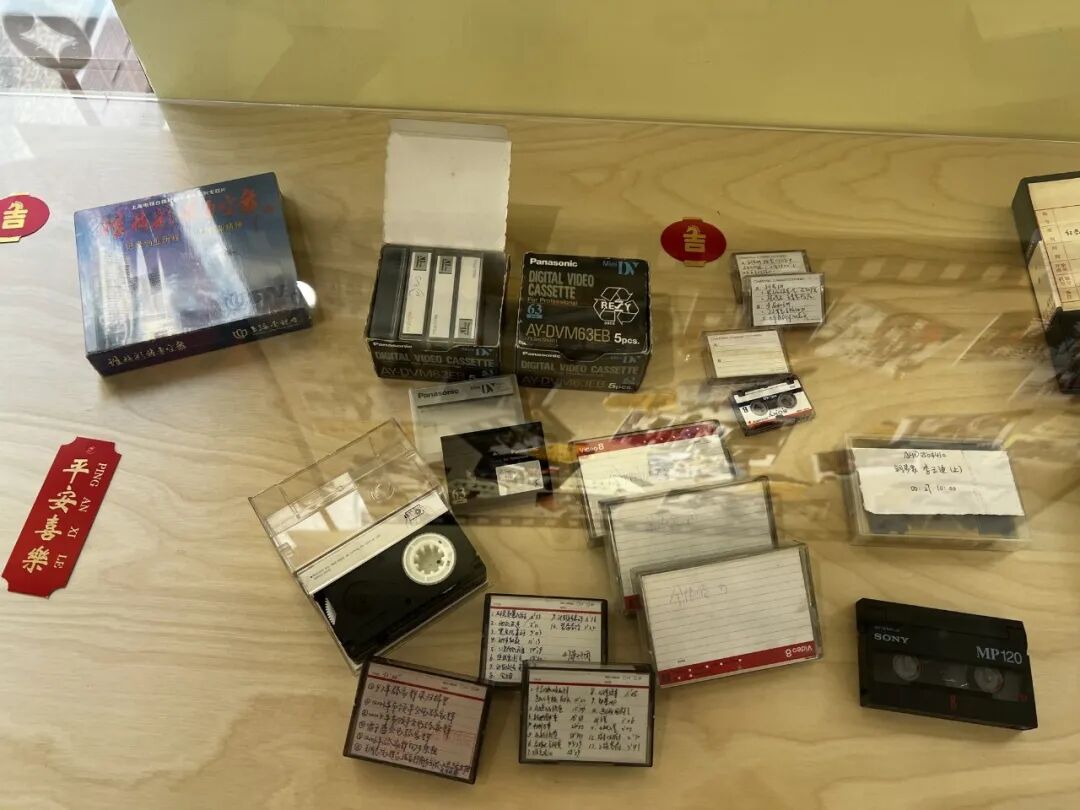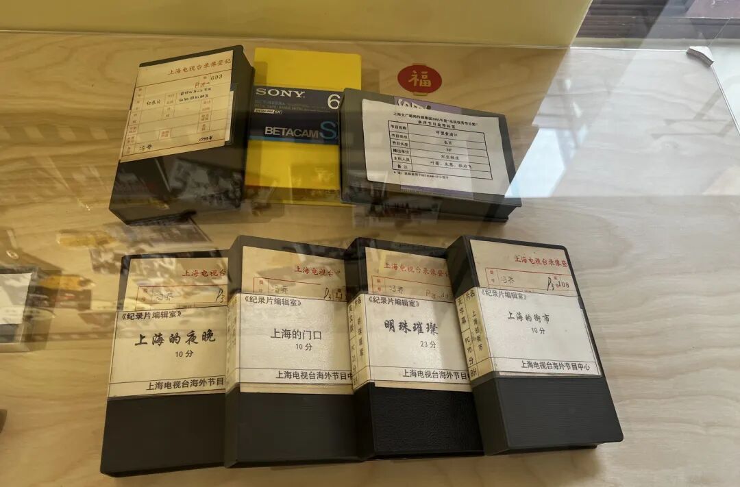 “客厅”一侧的展柜里,陈列着上世纪90年代的Betacam母带、VHS磁带和写满编号的索引卡,一旁则是泛黄的脚本、分镜手稿和旁白稿。它们没有刻意煽情,却让人意识到:上海的社会变迁,并不是在宏大叙事里发生的,而是一次次真实走访、一次次与被拍摄对象的对视,被一群纪录片人用最朴素的方式记录下来。