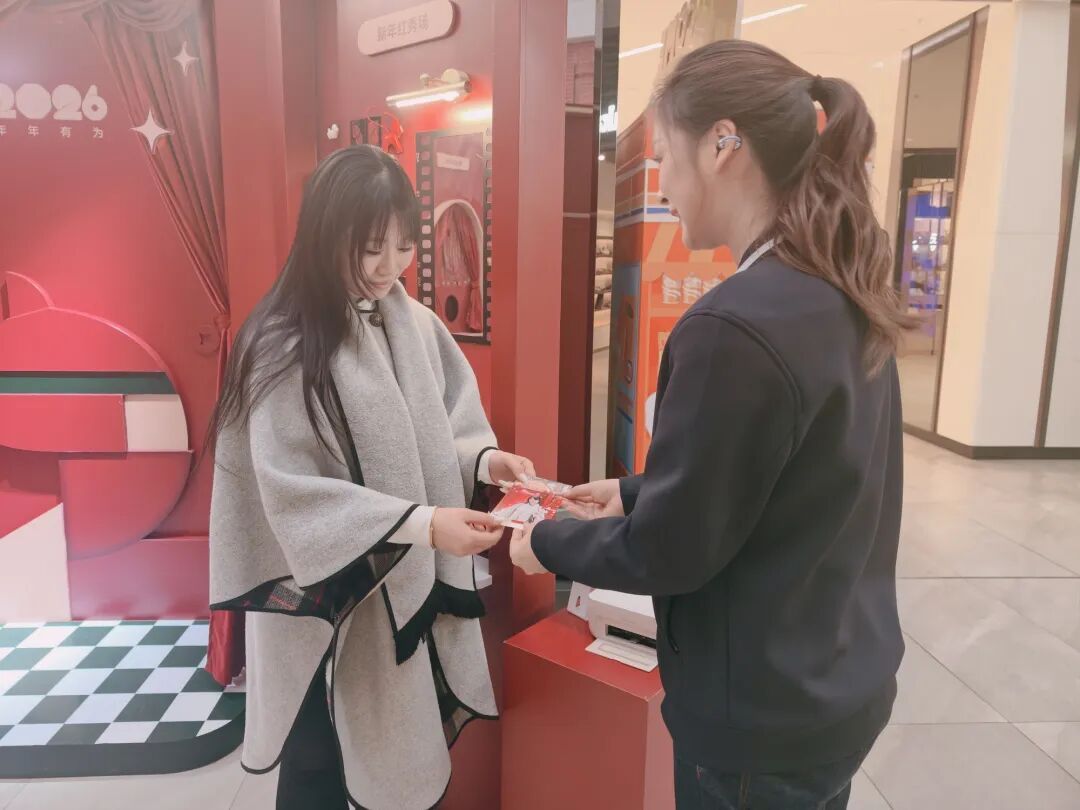 同时,店内还提供个性化篆刻服务,消费者可将祝福语或图案刻在产品上,打造专属年礼;新春期间到店,还能免费品尝一杯现磨咖啡,暖心服务为消费体验增色不少。