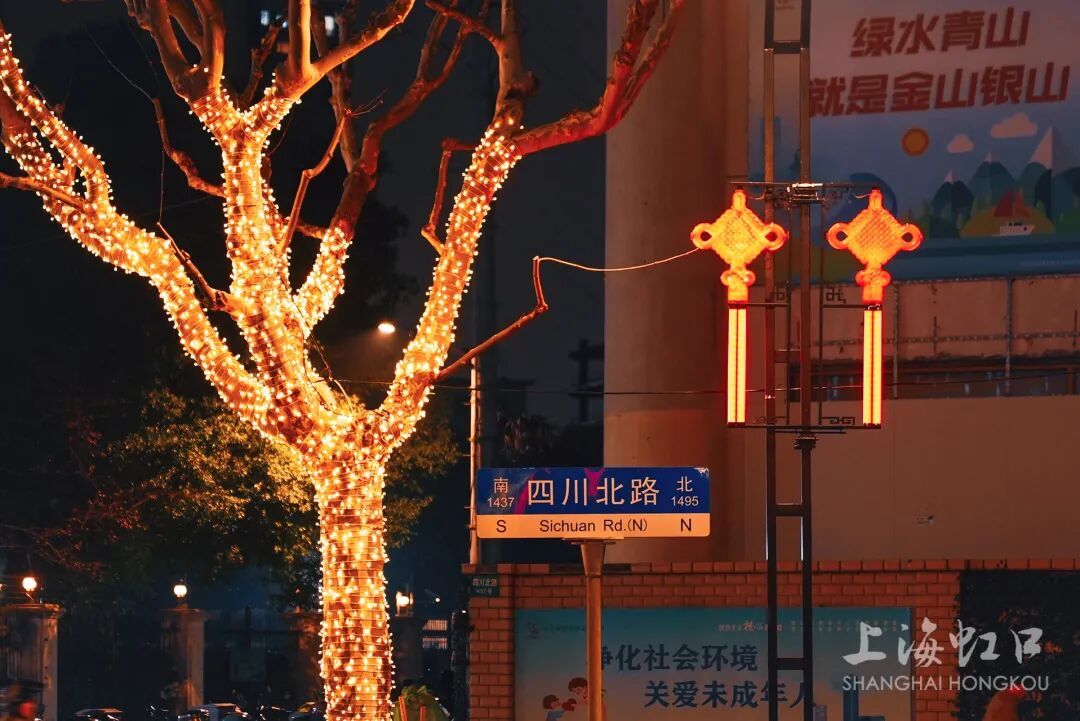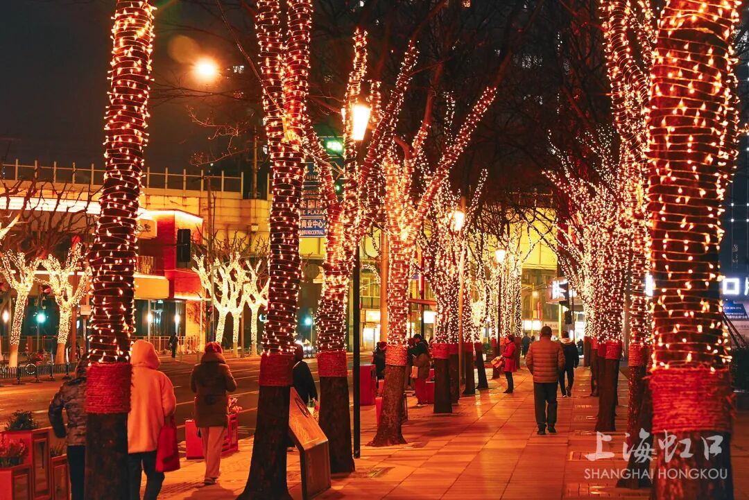 夜幕降临 四川北路的行道树仿佛 披上了星光织就的羽衣 树上的中国结熠熠生辉 放眼望去 商户的霓虹与街灯交相辉映 整条街成了一条 光影摇曳的温暖长廊 “仿佛走在星河里!” 不少路人举起手机 记录下这扑面而来的年味与璀璨 这样的梦幻场景 是虹口区为新春 精心调配的“视觉盛宴” 一场从街头巷尾蔓延至 滨江沿岸的光影狂欢 把年味直接拉满 据悉 此次四川北路沿街 景观灯光提升工程 北起山阴路、南至天潼路 通过对行道树、绿化带等 加装绕树灯、网灯 全面扮靓街区夜景 亮灯时间每天18:00至22:30 为市民晚间休闲、商圈消费 营造温馨舒适的氛围 促进区域夜经济繁荣发展 除此之外 在东大名路、北苏州路 吴淞路、四平路等主干道上 一盏盏红彤彤的中国结灯饰 在夜幕中格外醒目 487对中国结同时亮起 既透着浓浓的传统年味儿 也照亮了回家的路 更串联起白玉兰广场、北外滩来福士 滨港商业中心今潮8弄 宝华商业广场等商圈与地标 勾勒出一张“商业中心-旅游景点-城市干道” 三位一体的发光活力网络 春节期间 北外滩也进入 “春节限定皮肤”模式 2月15日至2月23日 全市景观照明开启 重大活动模式 虹口北外滩的白玉兰广场 国际港务大厦、国际客运中心建筑群 等标志性建筑纷纷启用彩光与动态光 黄浦江面上 建筑立面流光溢彩 动态光影交错变幻 与隔江相望的陆家嘴、外滩遥相呼应 共同成就节日璀璨夜宴 这些遍布虹口的璀璨灯光 不仅照亮了城市“颜值” 更是春节期间 各类文商旅体展活动的氛围担当