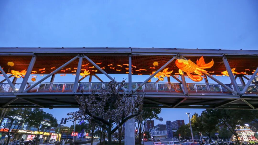 作为主干道,浦锦路被一盏盏硕大的中国结路灯装饰点亮。这些中国结造型优雅,红金色调在夜幕中格外醒目。推荐车行或慢行时透过车窗拍摄,流动的红色光点串联成线,宛如城市跳动的脉搏,象征着团圆、喜庆与吉祥。