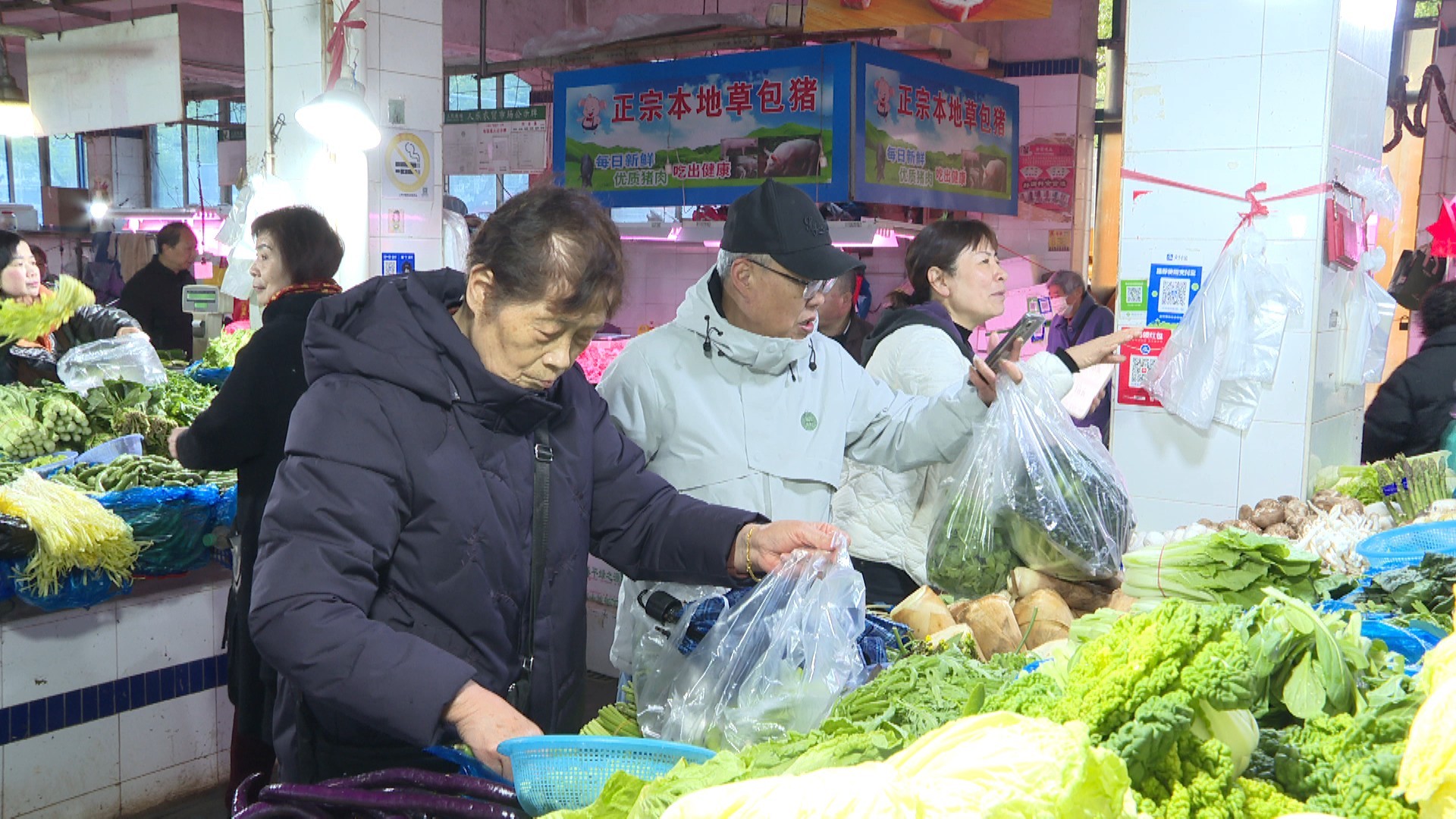 据菜市场工作人员介绍,春节期间,菜市场将继续营业,运营管理、卫生保洁等人员均值班在岗,保障市民“菜篮子”供应。