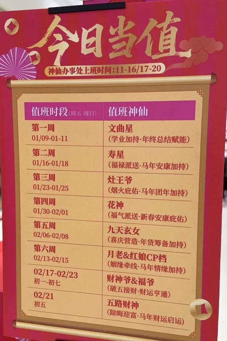 此外,百联又一城五角场店特设的“神力办事处”同样人气爆棚——即日起至2月23日,每周五至周日,文曲星、寿星、灶王爷等“神力NPC”轮流“上岗”,与市民趣味互动,邀请大家参与任务打卡、赢取新年好礼,轻松点燃节日氛围。