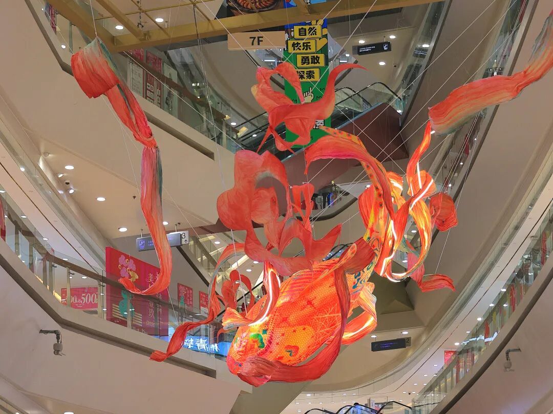 而在商场各处,“功成”“有余”“福禄”“如意”四组非遗主题装置“藏”在不同角落,让市民游客在逛街途中便能与传统文化来一场不期而遇。这些非遗装置不仅是一场视觉盛宴,更成为市民拍照打卡、感悟文化传承的“活力阵地”。