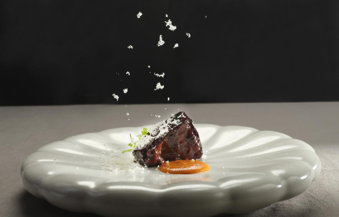 东西合璧的罗勒汁慢炖牛腩肉,也是老少皆宜。这道菜让经典中式炖牛腩邂逅西式灵魂香料罗勒,以文火慢炖,将牛腩炖至酥软而不失其形,特调的料汁作为“点睛之笔”,清香解腻,回味悠长。