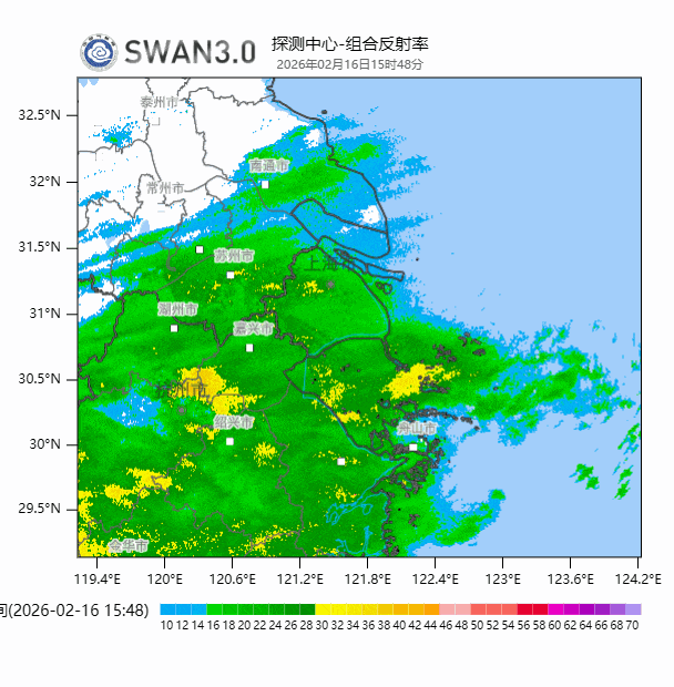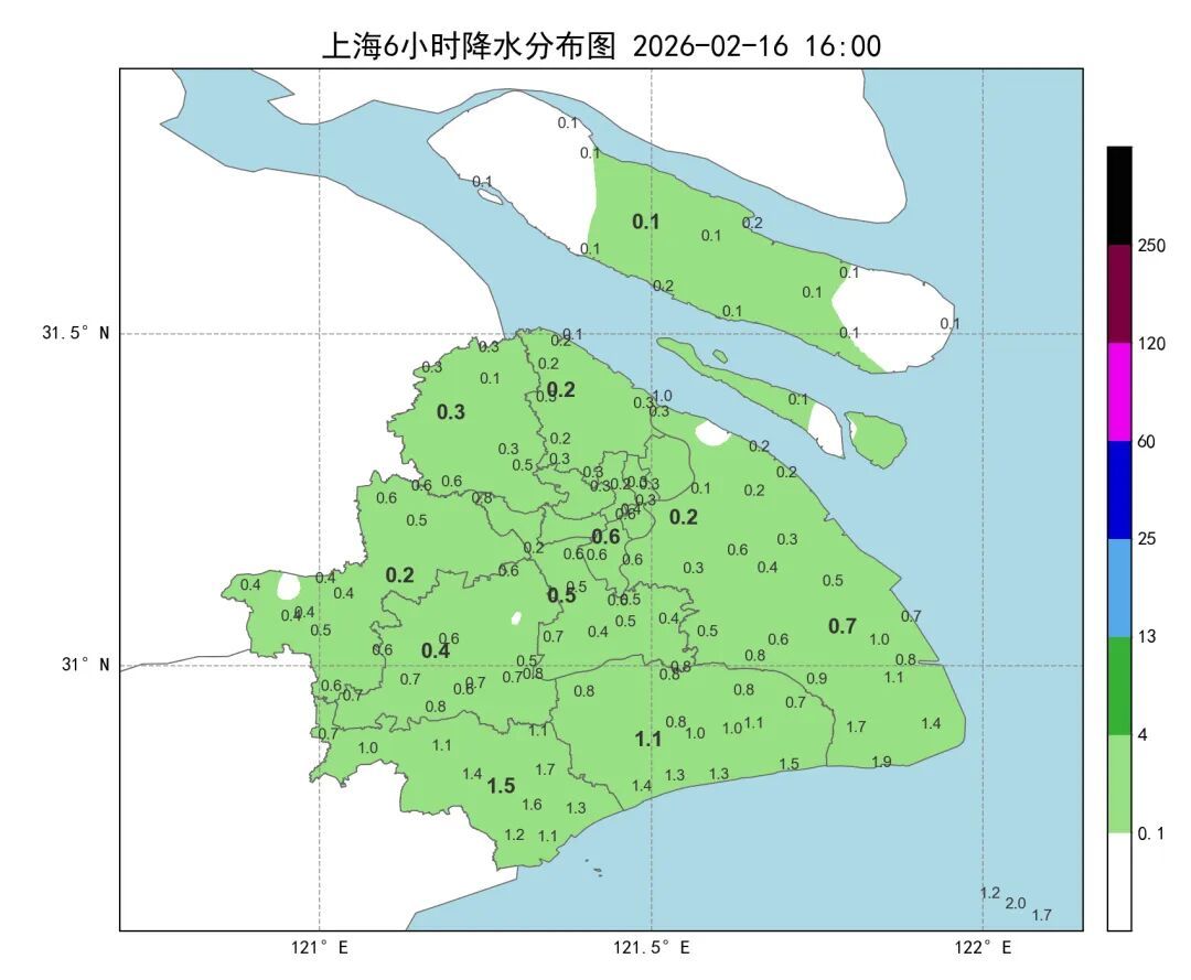 统计2月15日17时到16日16时实况显示: