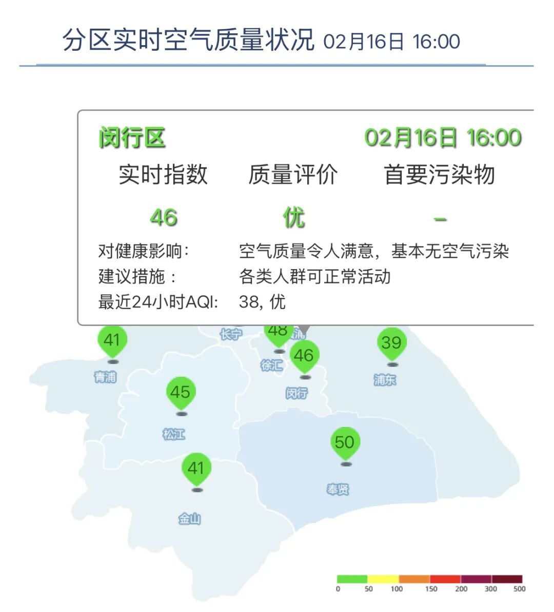 闵行区AQI为46,优。