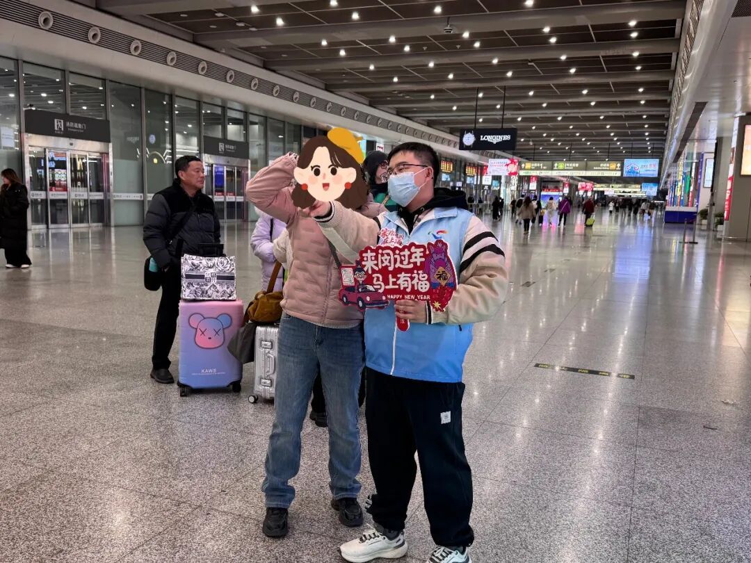 每一句问询,都是一颗急切归家的心;每一次准确指引,都是在为团圆加速。除夕当天,6名志愿者为无数素不相识的旅客送上到家之前的一句问候、一声叮嘱,他们的付出让归家的路更暖、更顺、更安心,也为这座城市添上一抹温情的底色。