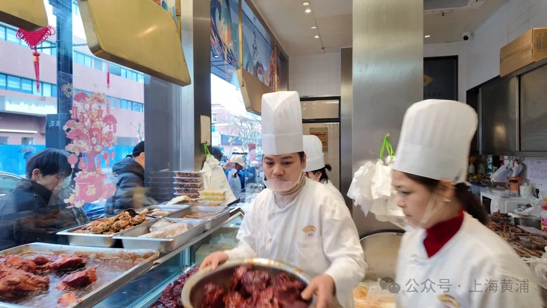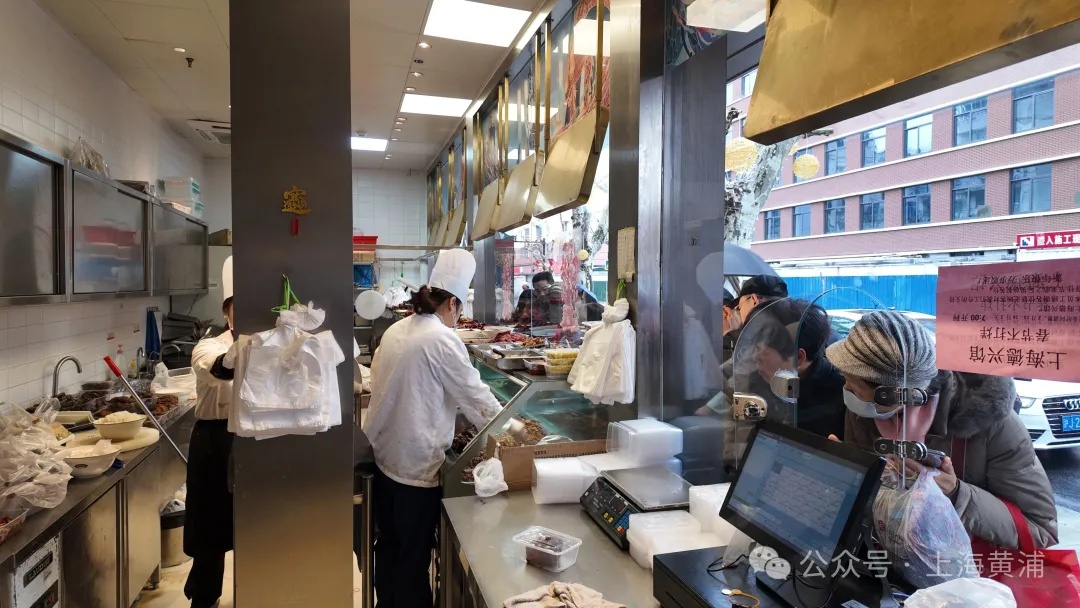 岁至除夕,团圆序幕已然拉开。除夕当日,上海细雨纷纷,然而这并未浇灭市民们置办年夜饭的热情。老字号上海德兴馆,外卖熟食窗口前早早地就排起了四五十人的长队,现场热闹非凡,处处洋溢着浓浓的年味。