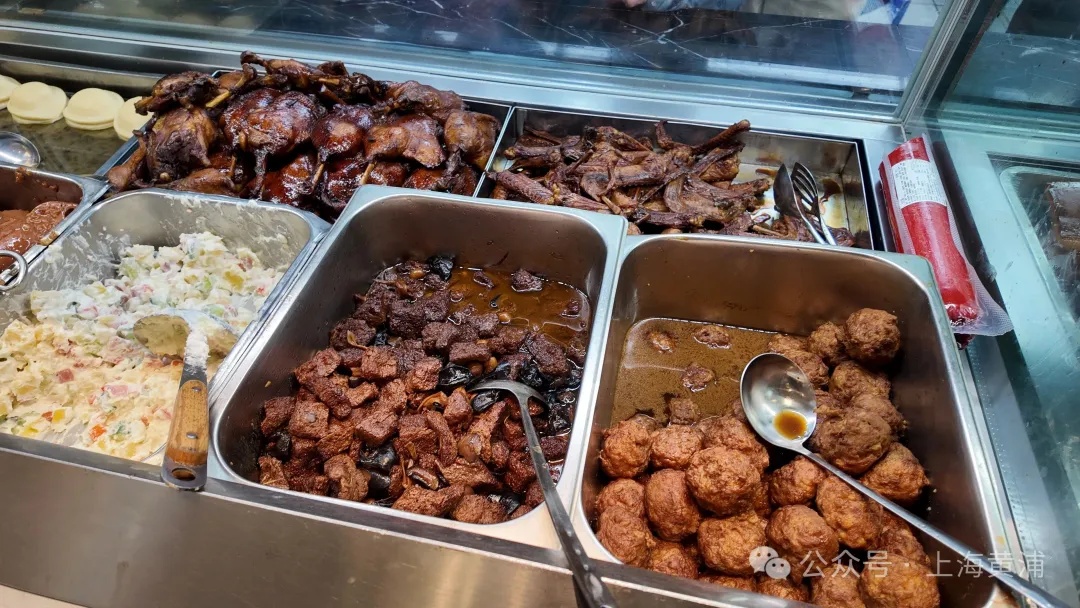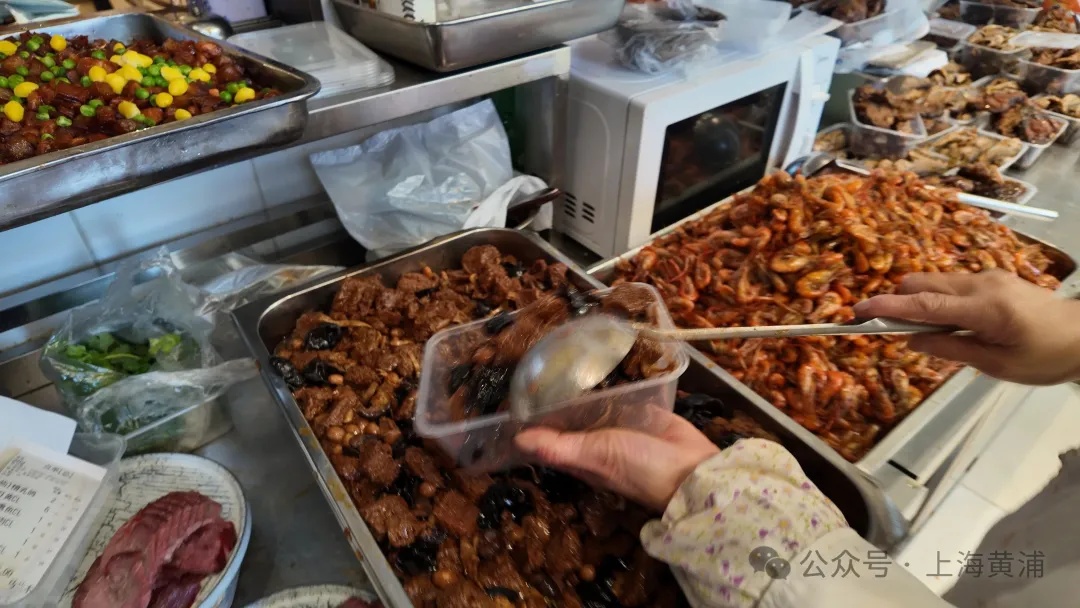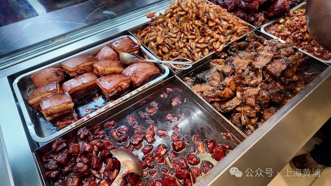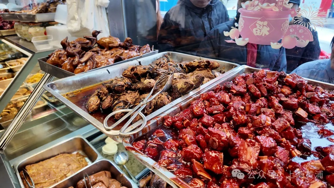 现场工作人员熟练地与顾客交流着,快速完成交易。不少人一口气点上四五个招牌菜,几乎把德兴馆的经典熟食“一网打尽”。油爆虾、熏鱼、烤麸、酱鸭、糖醋小排……这些都是上海人年夜饭桌上老少皆宜、缺一不可的菜品,老字号出品更是香气扑鼻、保质保量,承载着无数家庭的温暖回忆。