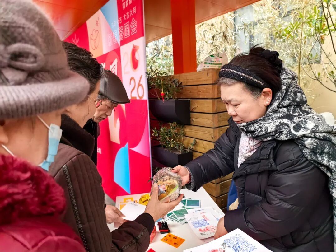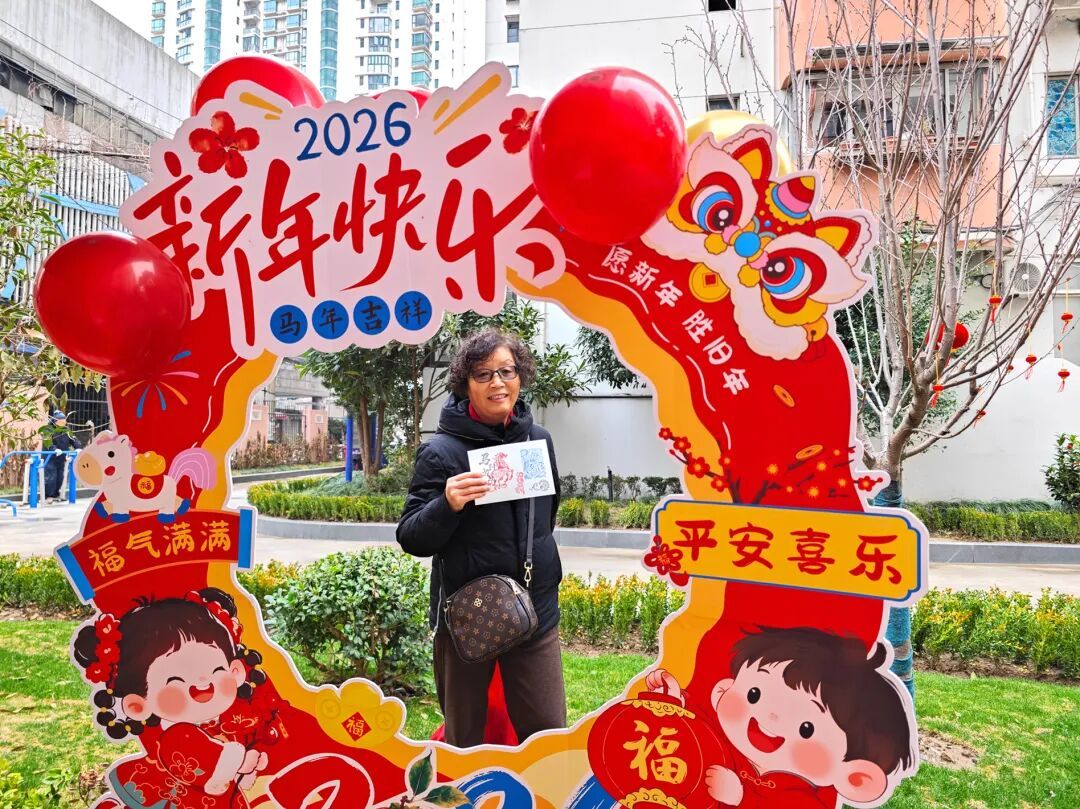 瑞福小区主会场内,居民们踊跃参与各项传统游园项目。“吉祥圈福”摊位前,参与者手持套圈专注投掷,欢声笑语不断;“接福入网”游戏寓意接住一年好运气,吸引众多居民尝试。互动照片墙成为热门打卡点,居民们纷纷驻足合影留念。每完成一个项目,工作人员会为居民敲上马年吉祥章,集满印章即可兑换新春礼品,现场热闹非凡。