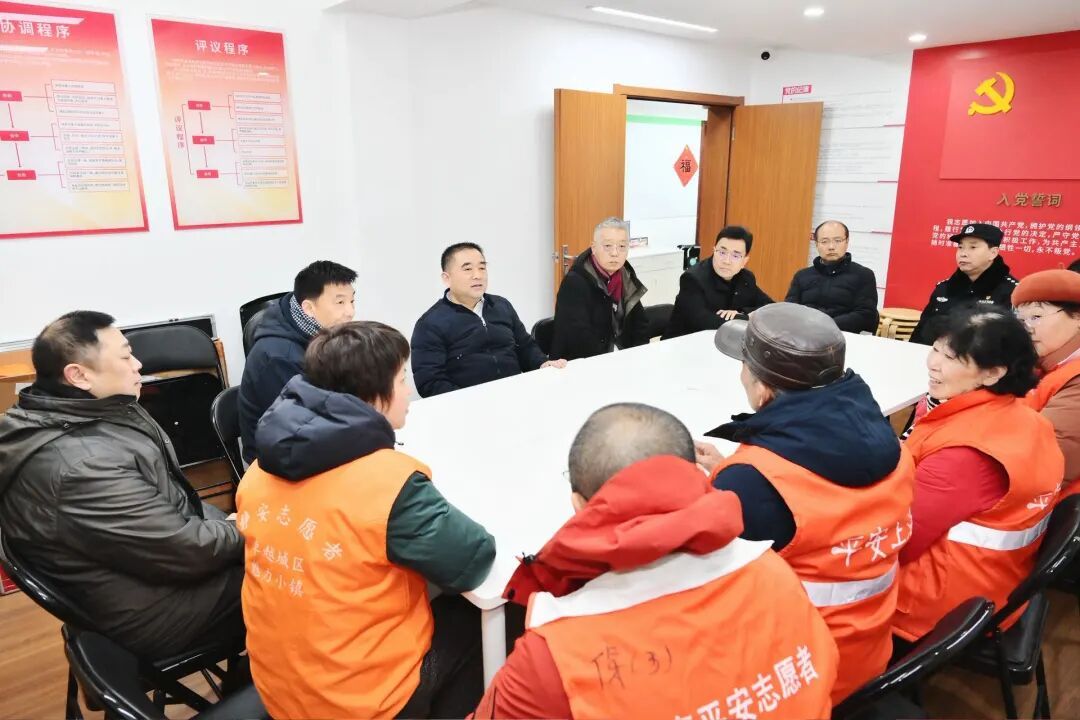 随后,钟晓咏一行来到临汾路街道临汾小区、彭浦新村街道彭五居民区、静安寺街道静安居民区。每到一处,钟晓咏都与值守的平安志愿者和社区工作人员亲切交谈,详细询问工作情况和社区治理特点,了解春节期间值班制度和安全管理措施。他对大家坚守岗位、无私奉献的精神表示充分肯定,叮嘱大家注意劳逸结合,并送上新春祝福,祝愿大家阖家幸福。