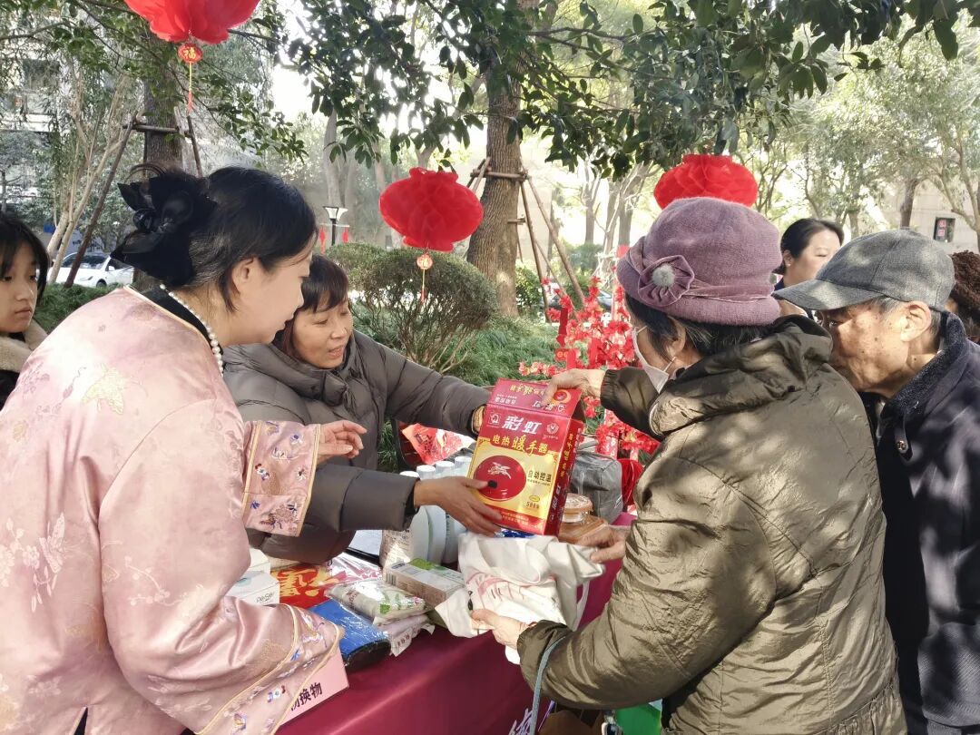 近日,南京东路街道上海滩新昌城小区里红灯笼迎风摇曳,而最引人注目的,是三德居委“以物换物”摊位旁堆起的一大堆旧电器:插头变形的取暖器、二十年前的硬壳暖宝宝、线头裸露的电热毯。它们旧得各有故事,却共同被老人们珍而不弃,在家中一放再放。