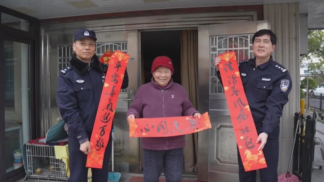 笔墨之情,不止于警营。马骥还特意多写了一批春联,与社区民警一同送往结对的杨王村。一副副融合了平安寓意的原创春联,连同反诈防盗的温馨提醒,被送到村民手中。