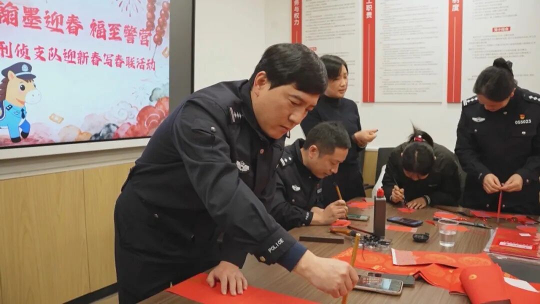 “春节期间勤务繁忙,写写字能让人静下心来,也和同事们多一分交流。”马骥说。刑侦支队民警钟源则表示,每年邀请马骥写春联已成传统,“这不仅是年味的象征,也给我们忙碌的公安工作增添了一份温暖的仪式感。”