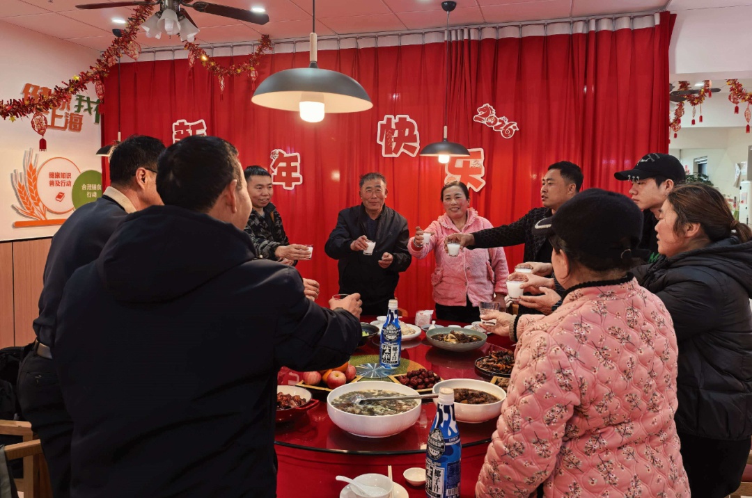 饭桌上,焦道俊一边细细品尝美食,一边和身边的工友给今晚的年夜饭打起分来,“这些菜烧得比外面饭店更合口味,不咸不油,清淡爽口,还实惠卫生。我给100分,你给打几分?”听说社区食堂春节不打烊后,焦道俊更开心了,“春节留岗工作,最担心的就是找不到地方吃饭,只能随便凑合。没想到社区食堂在春节期间天天开门营业,为大家烧好热乎的饭菜。这份心意,比啥都强。”