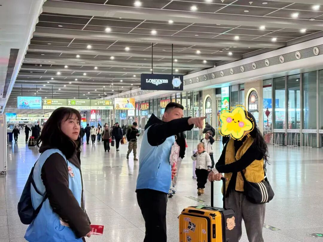 “你好,请问坐高铁该往哪里走?”“我的网约车司机停在了P9停车场,请问P9在哪里?”“请问市域铁路该去哪里乘坐?”这些是区委宣传部的志愿者们在除夕日被咨询最多的问题,他们已形成一套简短、精准的指引话术,为旅客争分夺秒,一整日解答咨询上百次。