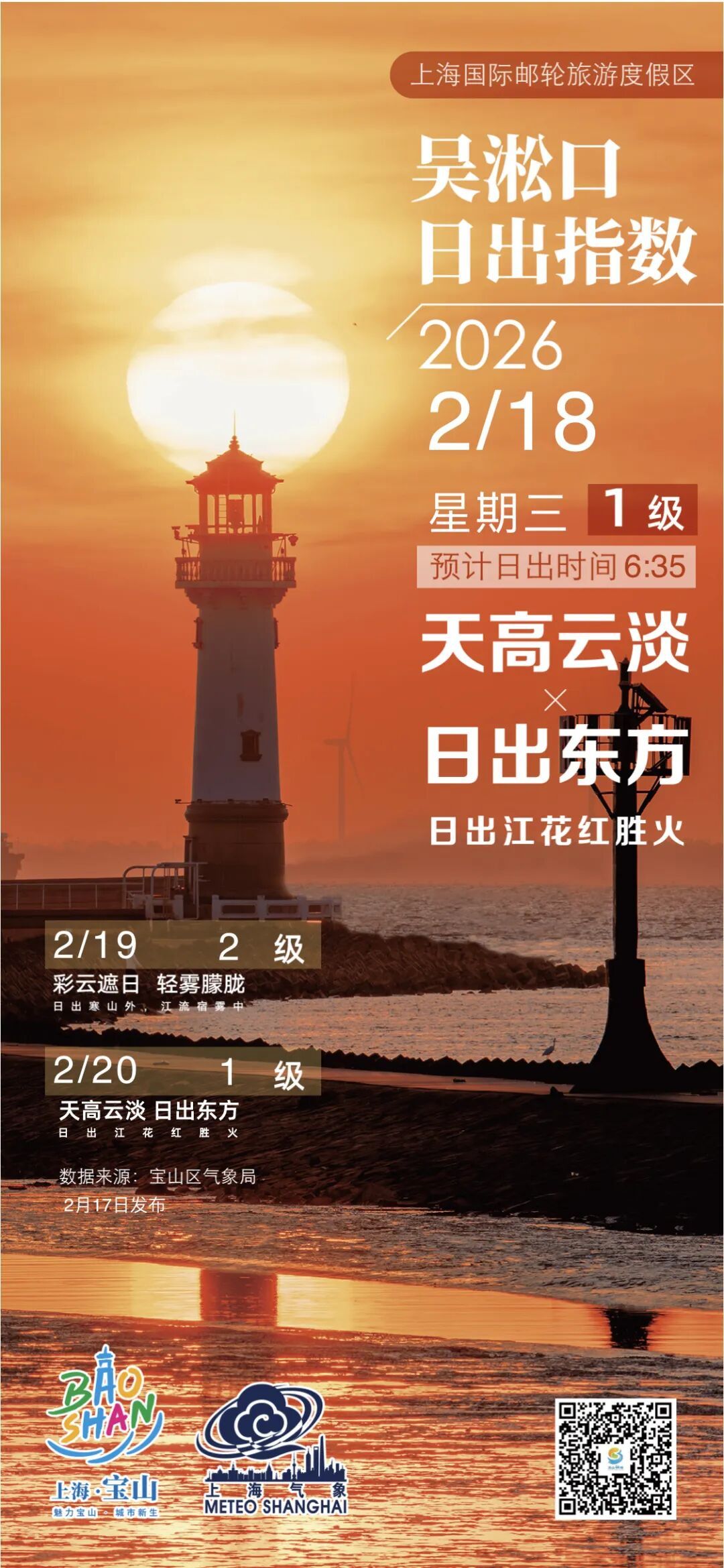 【吴淞口日出指数】2月18日1级 天高云淡×日出东方