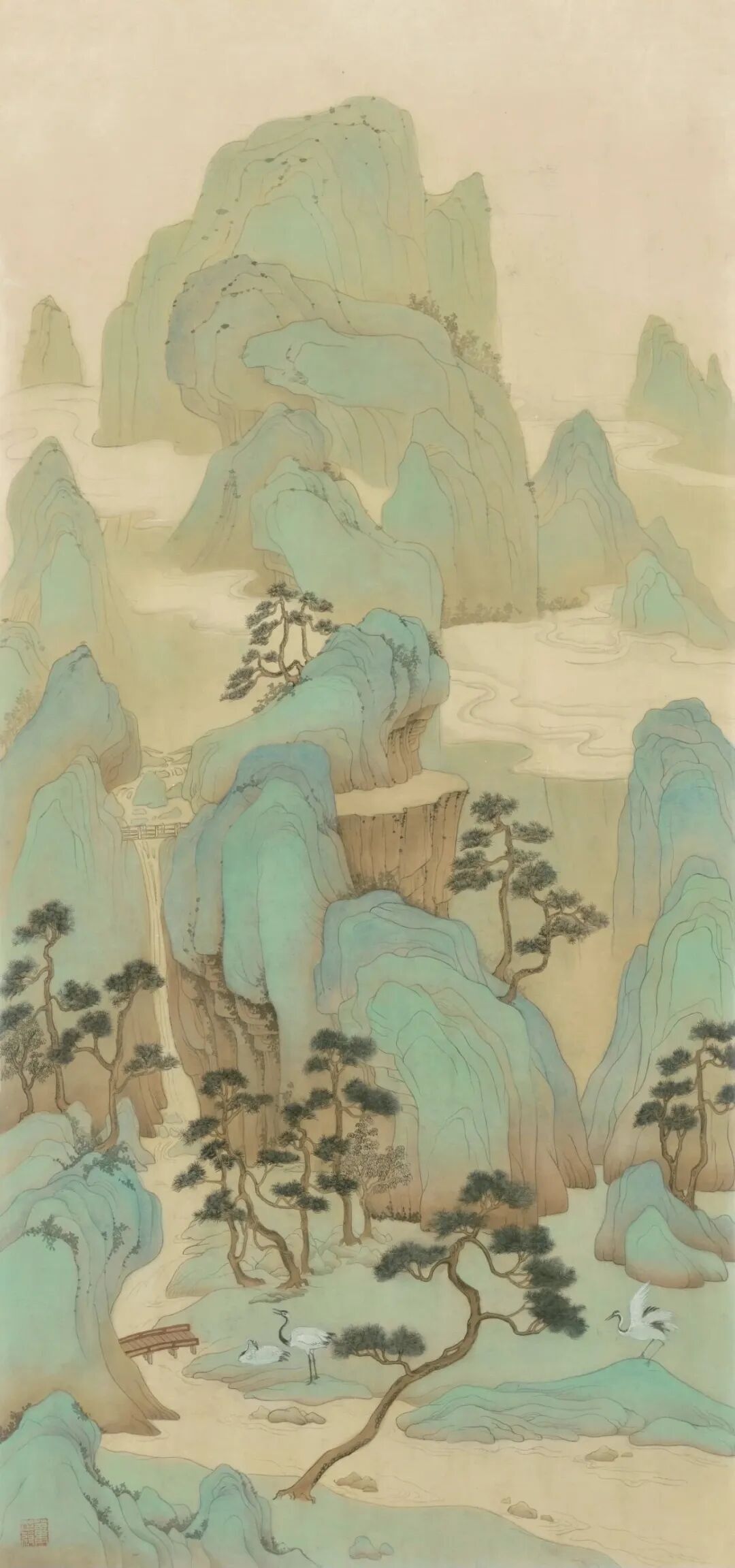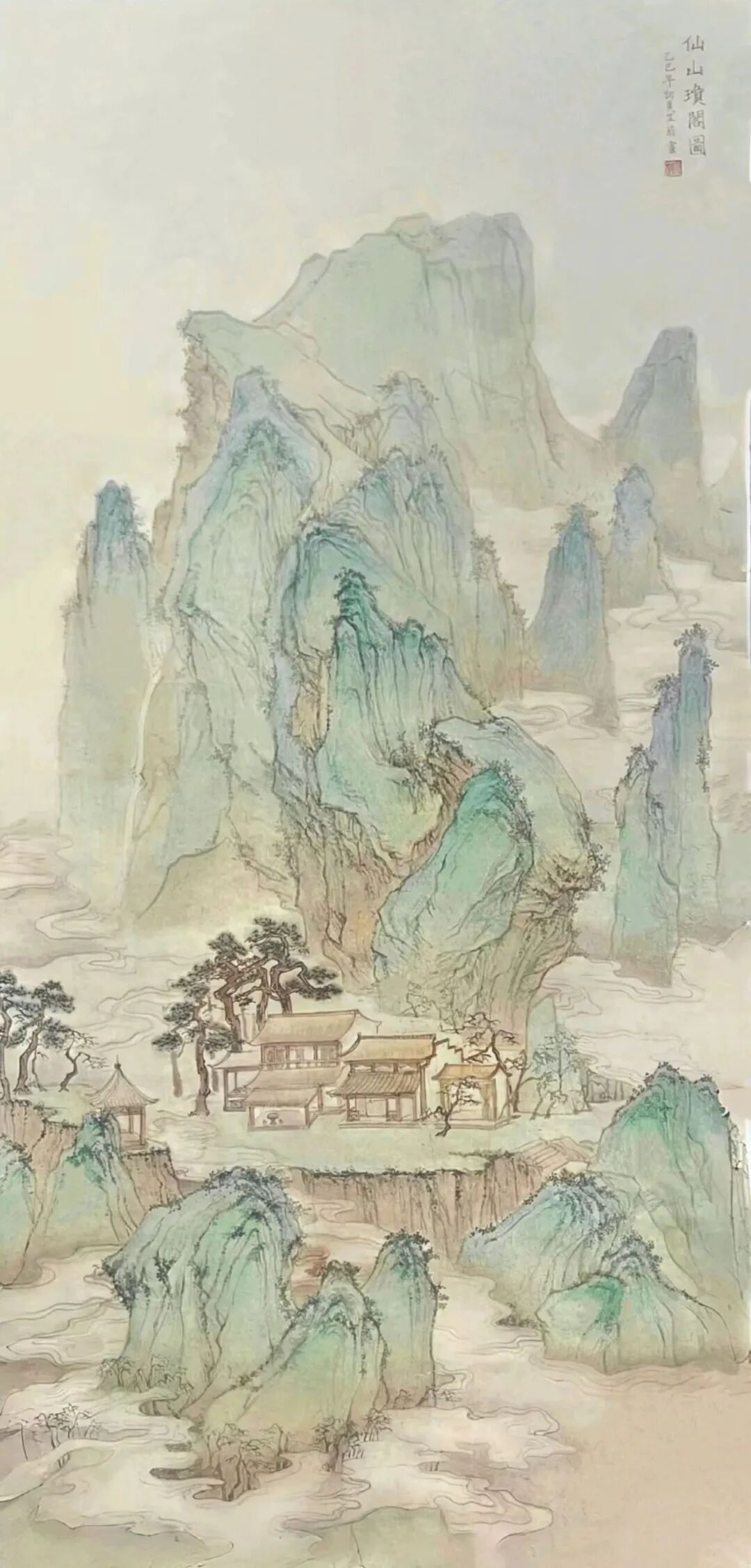 本次展览中,董芷蔚的作品以其独特的“轻、透、柔”特质引人注目。她并未止步于对传统的模仿,而是通过对传统青绿山水的“解构”与“重组”,探索出一条属于自己的艺术小径。