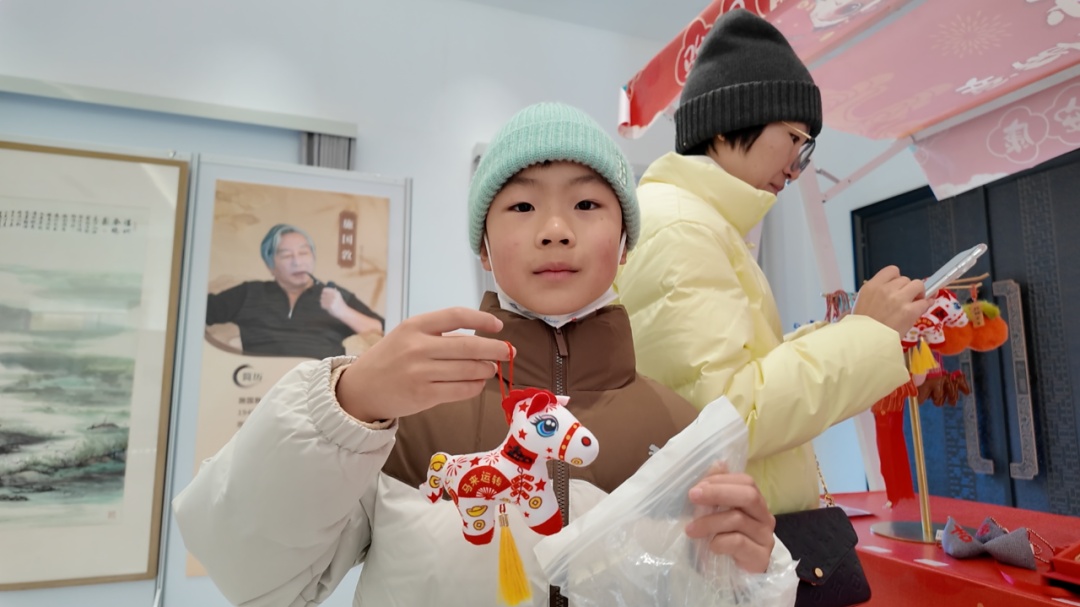 上午九点不到,金鳌山公园前车辆穿梭,游人如织。装点喜庆的公园内,庙会集市吸引众多游客驻足。设计精巧的马年文创、新年挂饰、祈福香囊色彩缤纷,令人眼花缭乱。其中,各类小马造型的文创最受欢迎,市民纷纷选购,讨个新年的好彩头。 一位小朋友则拿着刚买的小马饰品,开心地说:“小马跑得快,希望我在学习上也能跑得快一些。”