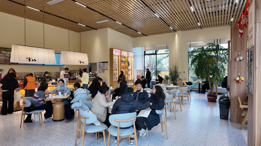 游园之后还可在园内的咖啡馆小坐休憩,假日期间,高涨的人气大大拉动园内餐饮经济。咖啡馆经营者高先生表示,客流量比平时翻了两三番,每天能卖出三四百杯咖啡。