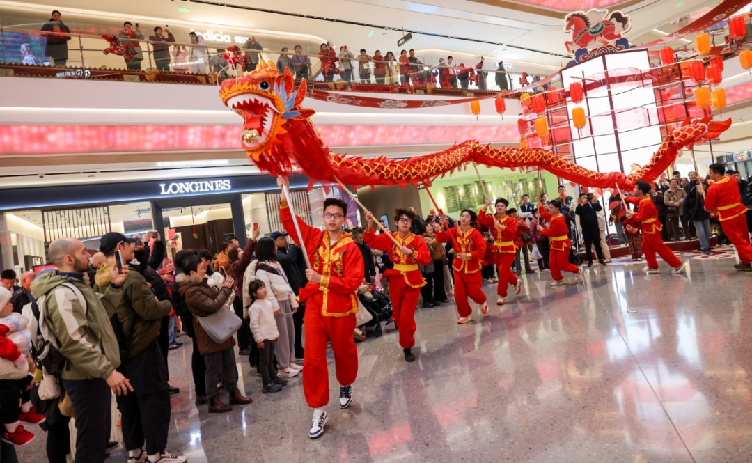马年新春启序,万象更新添喜。新春里,中海真如环宇城MAX张灯结彩、喜气盈门。2月17日,一场热闹非凡的醒狮采青活动如期上演,铿锵的锣鼓声、灵动的雄狮舞、涌动的人潮交织成景,各家商铺也迎来开门红,处处洋溢着团圆祥和、生机盎然的节日气息。商场方面介绍,受益于音乐会、团购券、新年出游采购热度叠加,预计今日客流同比去年同期增长超15%。 正月初一上午,中海真如环宇城MAX醒狮采青活动热情上演,铿锵锣鼓声中,灵动雄狮巡游、完成采青仪式,为商户送上“生财纳祥”的新春祝福。 醒狮巡游所到之处,商户纷纷开门相迎,简单的采青仪式传递美好寓意,也顺势带动了商场客流攀升,各大商铺迅速迎来消费高峰,其中餐饮、服装业态尤为火爆,成为新春消费的主力军。 中午时分,餐饮区早已座无虚席、烟火气十足,成为最热闹的区域之一。各家餐饮门店前不乏排队等候的市民,家人朋友围坐餐桌,点上一桌特色佳肴,畅谈新春趣事、共享团圆时光,店员穿梭其间,点餐、上菜忙而有序,空气中弥漫着美食的香气与团圆的暖意。 “春节就要吃一点不一样的套餐!今天的贵州口味火锅我是第一次吃,酸酸辣辣很好吃。希望新的一年生活甜甜蜜蜜,幸福顺遂。”正在一家火锅店就餐的市民殷晓晓说。 商场里的亲子乐园、游乐场也迎来客流小高峰,成为新春亲子休闲的热门之选。家长们或在一旁陪伴看护,或趁机休息放松,不少家庭特意带着孩子前来,在趣味玩乐中享受温馨的新春亲子时光,乐园入口处不时有家长带着孩子排队入园,工作人员有序引导,处处洋溢着童真与暖意,为环宇城的新春热闹氛围再添一抹亮色。 Lululemon、Nike、Mont-bell等服装区同样人气爆棚,各大品牌门店挂满新款春装,色彩鲜亮、款式多样,店员热情接待每一位顾客,耐心介绍款式、尺码,收银台前有序排起长队,尽显消费活力。 红灯笼挂满商场户外广场,新春装饰点缀各个角落,醒狮的欢腾与市民的笑意相映成趣。此次醒狮采青活动,不仅传承了传统民俗文化,更点燃了市民的新春热情,让环宇城成为春节期间市民休闲消费的热门之处,也以热闹红火的开篇,预示着新一年的繁荣兴旺、喜乐安康。