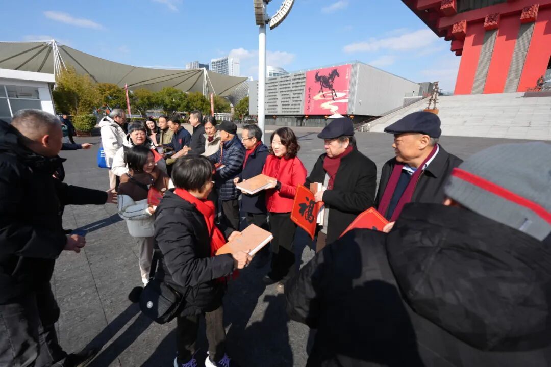 2月17日大年初一上午,书法名家送福活动在0米序厅如期举行,正式拉开“艺马当先——来上美过大年”新春系列的序幕。由丁申阳、陈翔、张伟生、潘善助、晁玉奎、章宏伟、朱涛、陈晓、范佳妮等组成的沪上书法名家“天团”现场挥毫,笔走龙蛇间,一幅幅笔墨遒劲、喜气洋洋的“福”字跃然纸上。正值上海美术馆建馆70周年之际,馆方特邀70位小朋友来到现场,与书法家携手共书福韵,为观众献上来自上海美术馆的新年祝福。观众王女士表示:“每年春节来上海美术馆领‘福’字,已经成了我们家不变的新年仪式。既热闹又雅致,太有纪念意义了!”