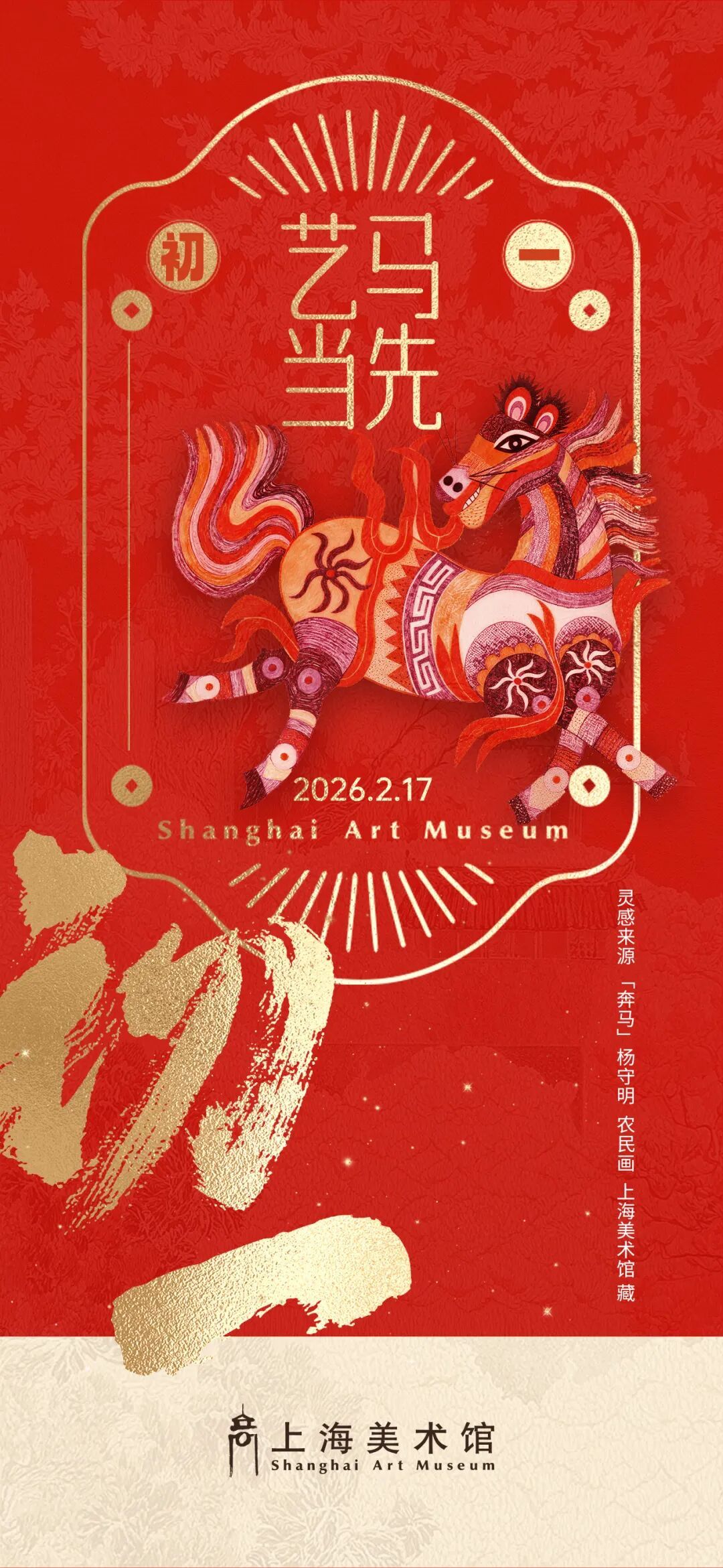 马跃福至,艺启新岁。大年初一早晨,上海美术馆(中华艺术宫)门前已是年味十足,不少游客早早等候,期待在艺术氛围中开启丙午新春。值此建馆七十周年之际,上海美术馆隆重推出“艺马当先——来上美过大年”新春系列:春节期间五场精品美展“艺”彩纷呈,30余场公教活动趣味多元,特色文创餐饮惊喜焕新,更有全新新春限定夜场上海美术馆“海上电影艺术沙龙”,为市民游客献上一场有温度、有深度的文化盛宴。
