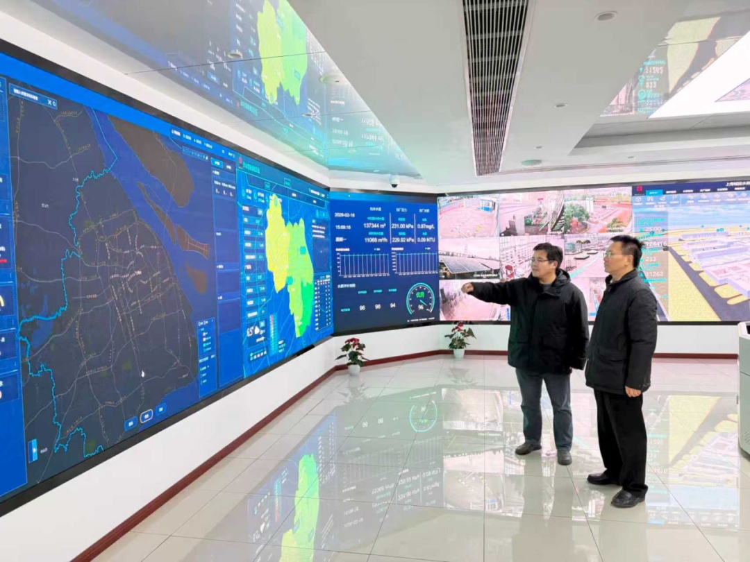 随后,陈华文来到城投水务南市水厂,认真察看实时水质监测数据、供水调度系统运行情况,详细询问节日期间供水能力、抢修预案及水质保障措施,亲切慰问值班值守员工。他强调,供水是城市的“生命线”,要严格全流程质量管控,加强设施巡查维护,确保水量足、水压稳、水质优,让群众喝上“放心水”。