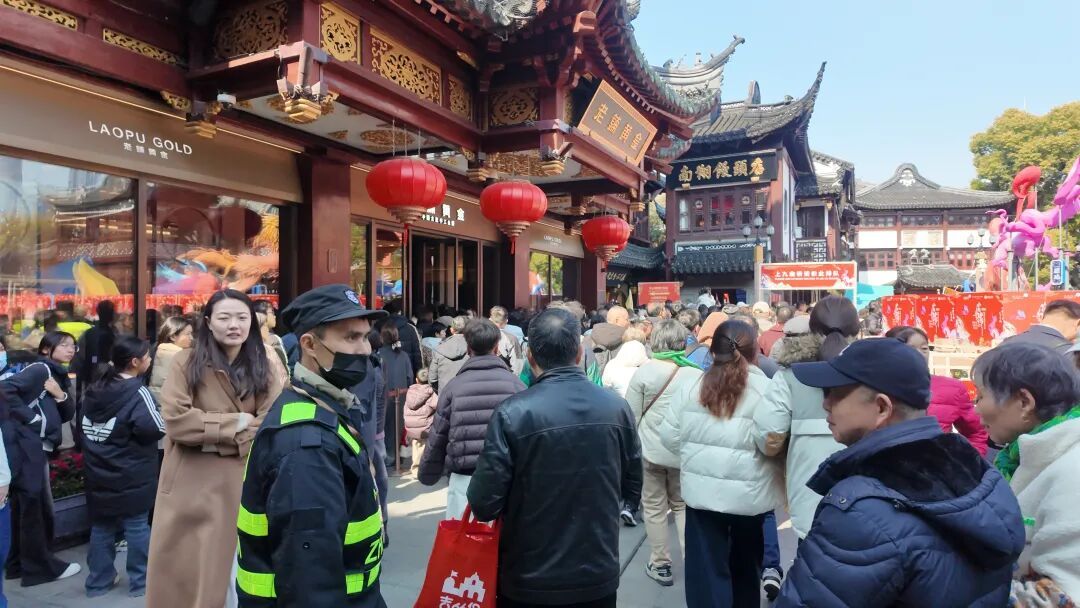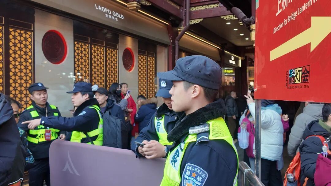 为应对大客流,公安部门制定了充分的春节长假应急预案,实行高级别安保措施。下午一点,豫园商城内瞬时客流达到15000人。黄浦公安分局豫园派出所责任区警务队队长陶清源介绍:“今天是大年初一,按照风俗习惯,老百姓都喜欢到九曲桥走一走,迎接新年好运。我们开启了蛇形通道和‘三进五出’的限流措施,确保游客安全有序游园。如果客流持续增加,我们将进一步升级限流措施,变为‘一进七出’乃至‘只出不进’。”他呼吁游客服从现场工作人员安排,共同营造文明安全的游园环境。