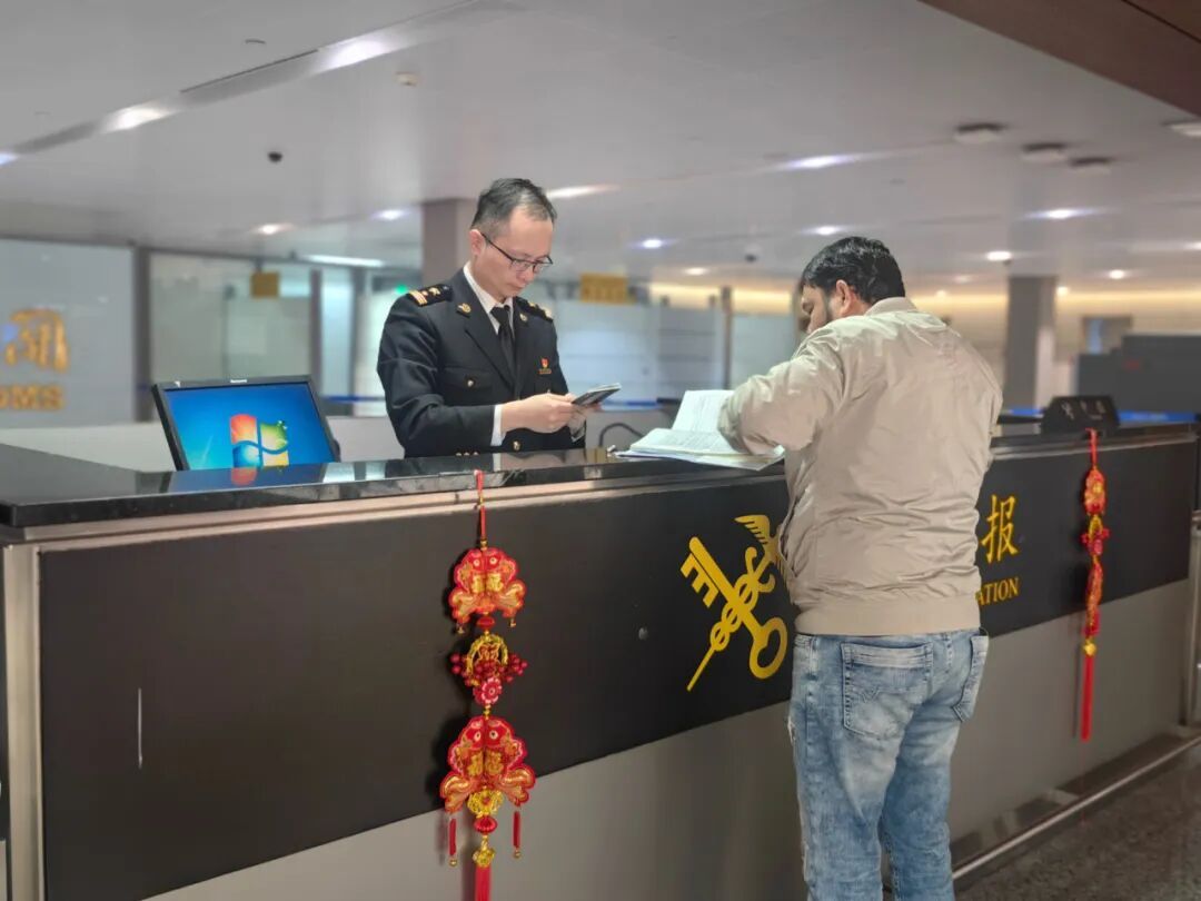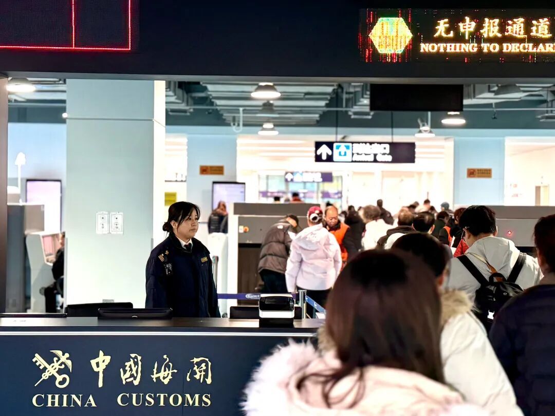 2月16日0:41的上海浦东国际机场S1卫星厅,上海海关所属浦东机场海关旅检处旅检十二科迎来除夕的第一位国际中转旅客,为旅客指引后续转机路线,为深夜抵达的旅客衔接起下一段旅程。与此同时,旅检四科也在各自的岗位上忙碌不停,在卫生检疫岗耐心协助健康申报,空港海关人以实际行动全力保障海外游子归途顺畅通关。