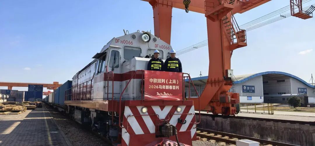 2月17日大年初一,马年新春首列中欧班列(上海)完成货物集结,满载家电、汽车零配件等货物,从铁路闵行站发车。本次班列装载110个标准集装箱,总重量约1,000吨,总货值超4,000万元人民币,将从阿拉山口口岸出境,前往波兰马拉舍维奇。