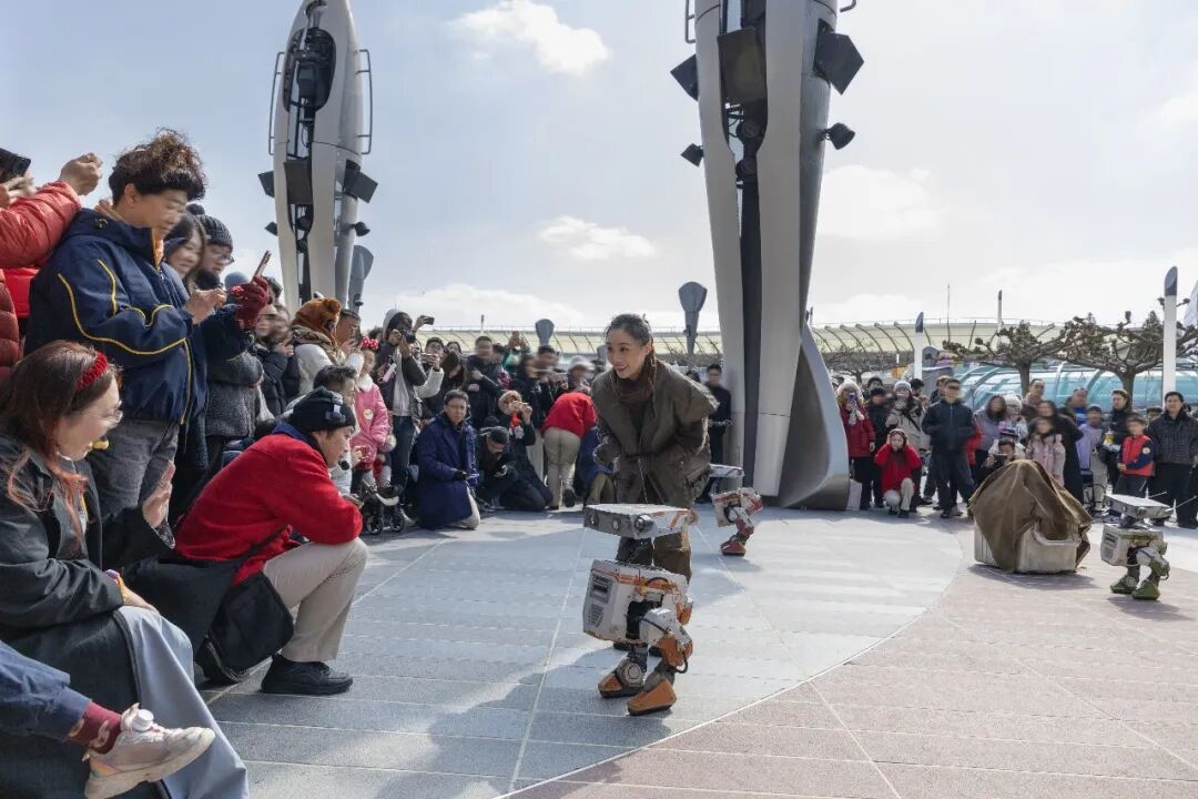 “我觉得好可爱,当它蹲下来,‘眼睛’面对你的时候,互动感特别强。”游客温小姐惊喜地说。