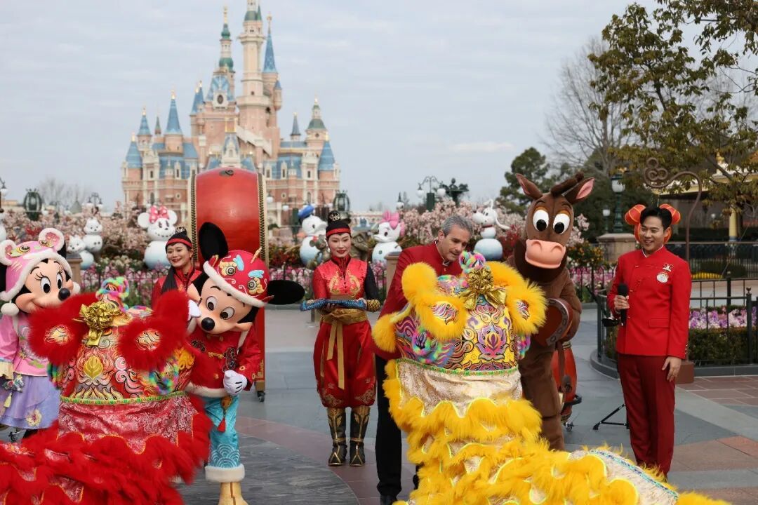 上午九时许,身着新春节日盛装的米奇和米妮刚一现身,便引来阵阵欢呼。随后,两只代表吉祥与好运的瑞狮登场,带来了浓浓的年味。