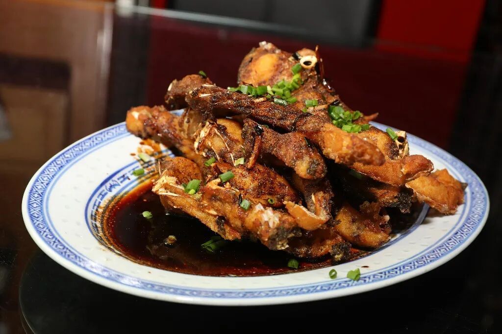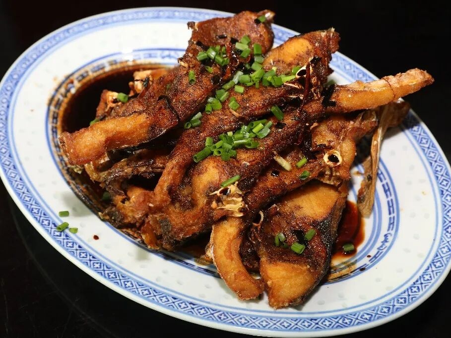 王师傅坚持选用本地青鱼中段——肉质紧实、刺少味鲜。处理时去头尾,片成厚薄均匀的鱼片,先用葱、姜、盐和少许陈皮腌制20分钟去腥提香。随后,在不粘锅中倒入足量菜籽油,待油温升至八九成热,将鱼片轻轻滑入,炸至两面金黄酥脆,捞出沥油。