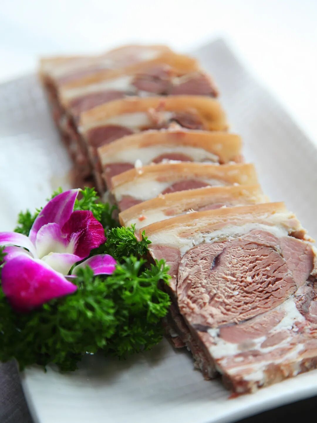 一盘正宗的江桥白切羊肉,其魅力在于做“减法”:极少用重味香料,仅凭羊肉与时间、火候的“对话”,留住最纯粹的鲜香。羊肉出锅冷却后,肉质紧实,形成一层晶莹如玉的肉冻。此时切片,无论冷食蘸酱,还是温润热食,都毫无油腻腥气。