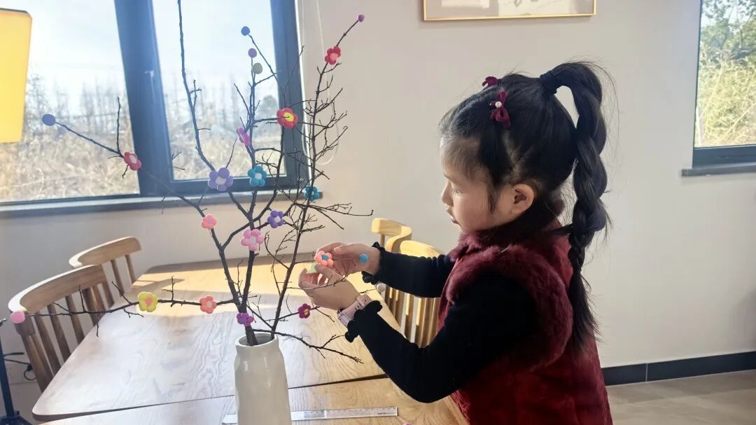 先修剪枯枝,褪去多余的杂枝,将修剪整齐的树枝轻轻插入花瓶,稳稳筑牢“花树”的根基。紧接着,拿起各色彩泥,揉一揉、搓一搓,转眼就变成一颗颗圆润可爱的小圆球,再将小圆球拼接组合,一朵朵小巧玲珑的小花便初具雏形。最后,小心翼翼地将做好的小花,一朵朵错落有致地粘在枯枝上,一束独一无二的黏土年宵花,就正式完工啦。
