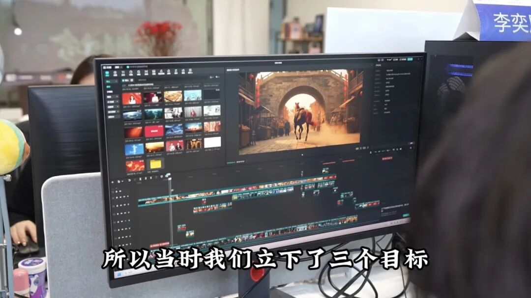 其中令他印象最深的,莫过于儿童共创AI短片《马年去哪串个门》。他打开电脑,给记者看了这个节目的雏形:画面始于一扇科技感十足的“任意门”,门后世界千变万化——河南9岁小朋友幻想出福娃与仙鹤“腾云驾雾”,上海的8岁小朋友骑摩托车与恐龙“竞速”,而最令人惊叹的投稿来自4岁的侯嘉艺小朋友:奔跑的福娃变身骏马,驰骋在云端之上。