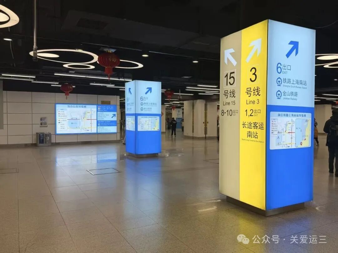 近日,1、3、15号线上海南站站为解决导向信息虽详细,但信息文字过多,不够形象直观的问题,车站从乘客实际需求和常规动线出发,根据“动线更直观、信息更简洁”的导向系统优化方案。