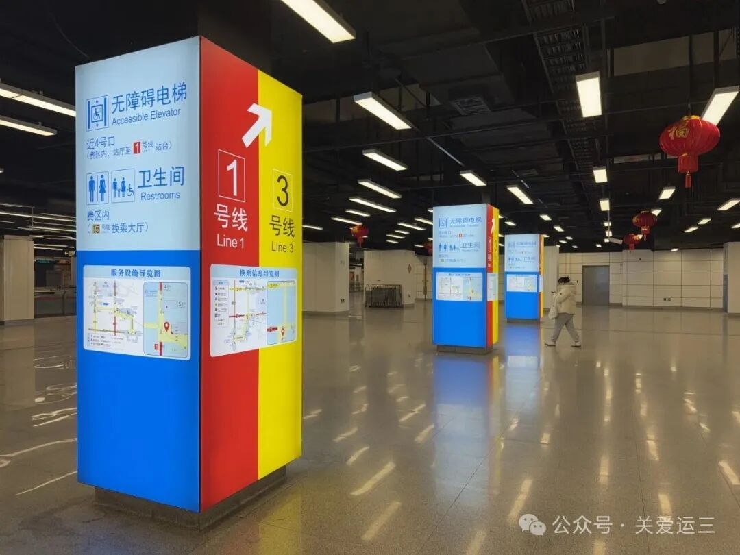 所有信息均经过现场反复校验,确保空间指向的绝对准确性。这一立体化的指引网络,能同时满足快速通行与细致寻址的不同需求,最大限度减少乘客的寻路思考与迟疑时间,让换乘变得更为流畅。