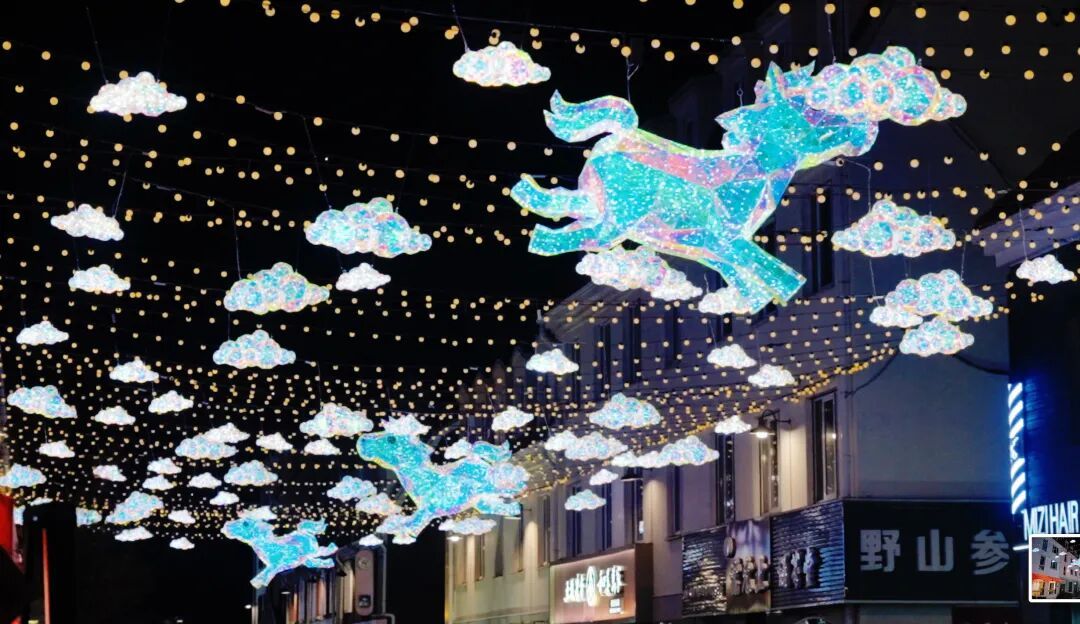 华灯璀璨、热闹喜庆,商圈焕新颜,年味与繁华相映成趣。